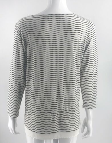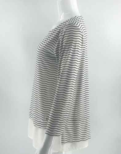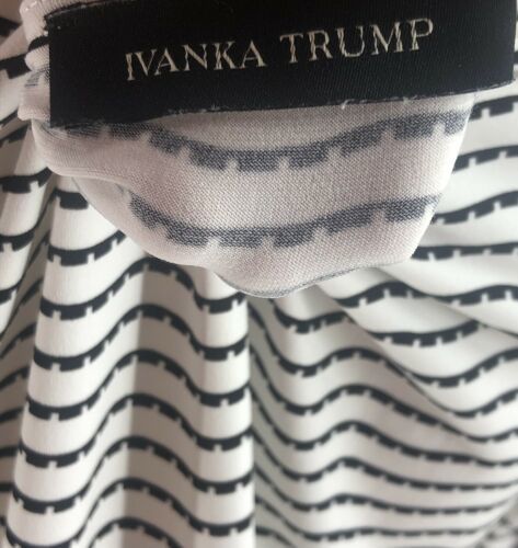 Ivanka Trump Top Size Medium White Black Striped Faux Layered Chiffon Hem Womens