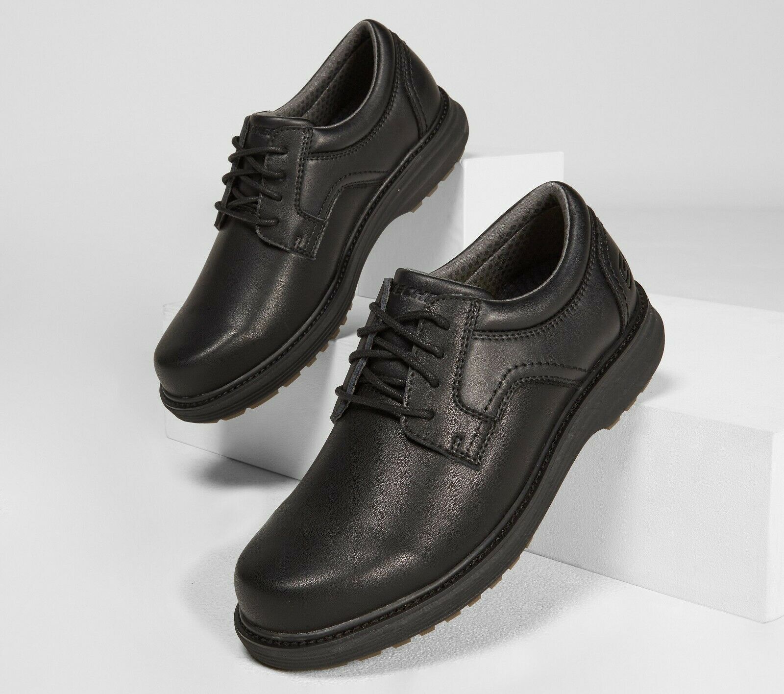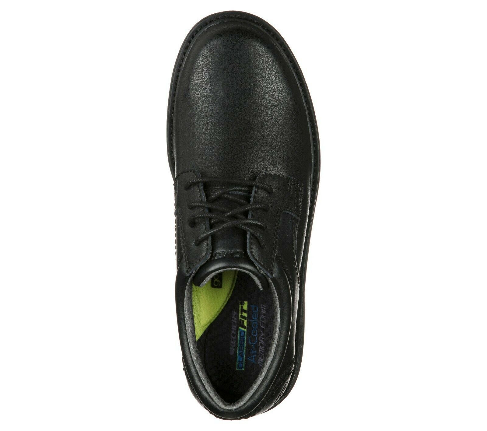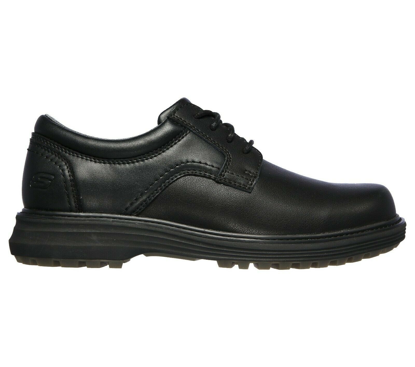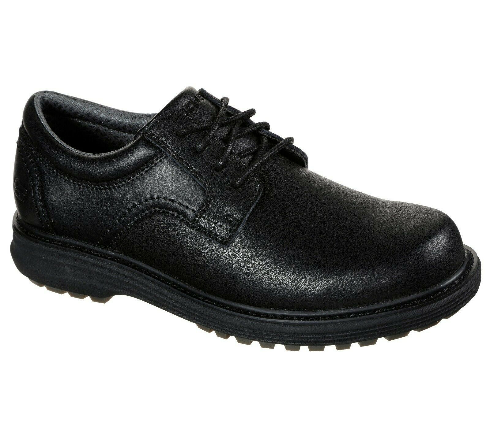 Ruggedly handsome style combines with cushioned comfort in the SKECHERS Wenson - Montel shoe. Smooth oiled leather upper in a lace up dress casual plain toe oxford with stitching and overlay accents. Air-Cooled Memory Foam insole.