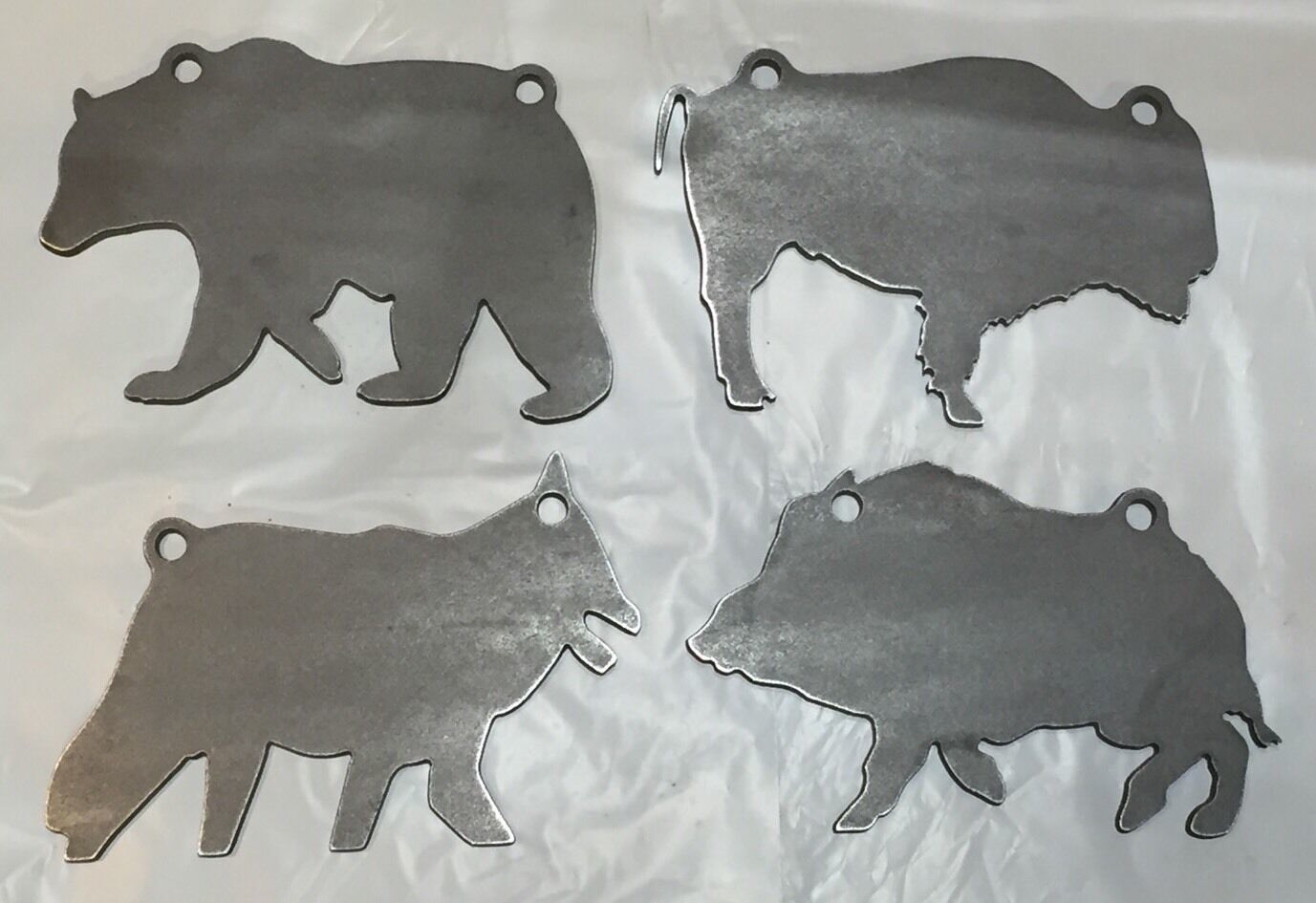 AR500 Animal Silhouette 4pc Set Bear Bison Coyote Hog Steel Target Gong 12" X 8"