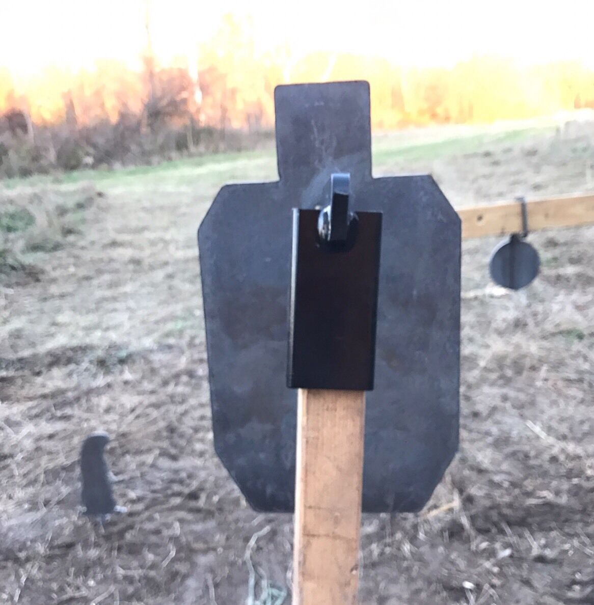 Simple design allows you to shoot in just seconds. Simply slip the hanger over a 2x2 board hang your target and you're ready to shoot. Goes great with our single hole targets and IDPA/IPSC targets.