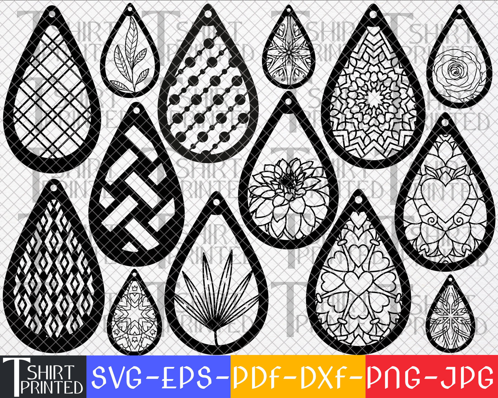 Svg And Dxf Digital File Contains Earring Svg Bundle, Earring Template Svg, Leather Earrings Svg, Teardrop Svg Bundle For Use With Cricut And Silhouette Systems.