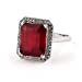 This stunning emerald cut ruby ring showcases a deep red gemstone set in lustrous white gold, combining passion and vitality with modern sophistication and sleek brilliance. Known as the "King of Gems," ruby is believed to ignite the life force, boost confidence, and attract passionate love. Ancient warriors wore rubies into battle for courage and invincibility. As the July birthstone and a gem aligned with Leo and Cancer, this piece carries deep personal meaning for those connected to these signs or born in July. Connected to the heart chakra, wearing ruby close to the body is believed to enhance its healing and spiritual properties. Accented with vivid green emerald for added brilliance and contrast. Designed for everyday wear or special occasions, this ring makes a beautiful statement on any hand. From our family-owned workshop in the Los Angeles Jewelry District, Galaxy Gold has delivered American-made fine jewelry since 1985. We use only solid 18K gold and ethically sourced natural gemstones, inspected through our stringent quality control process before shipping. A thoughtful gift for the woman who appreciates fine craftsmanship and timeless American-made jewelry. Every purchase includes our 30-day satisfaction guarantee and lifetime warranty ? because quality jewelry should last forever.