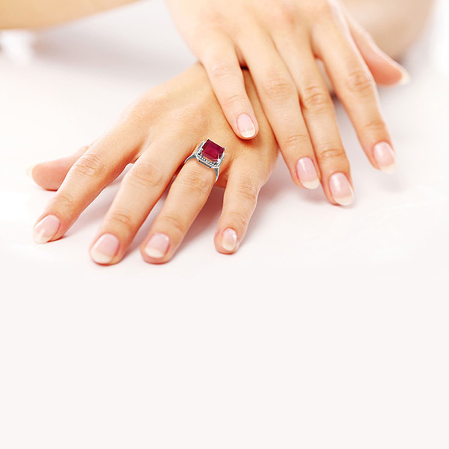 Galaxy Gold GG 18K Solid White Gold Emerald Cut Octagon Shape Ruby Diamond Halo