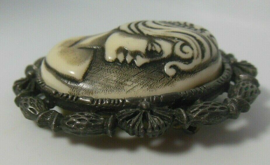 Vintage Large Carved Black/White 3D Cameo Brooch