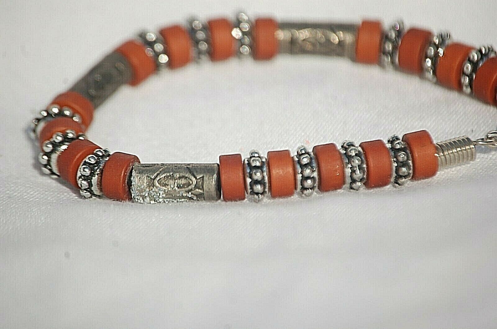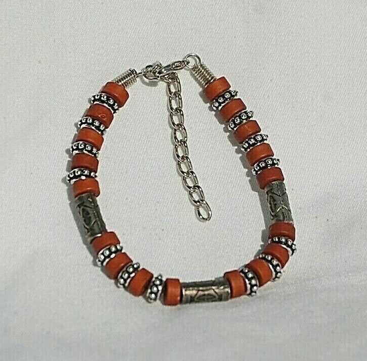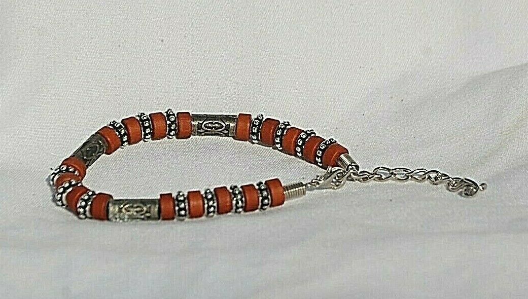 Costume Jewelry Bracelet w Brown & Metal Beads Lobster Clasp