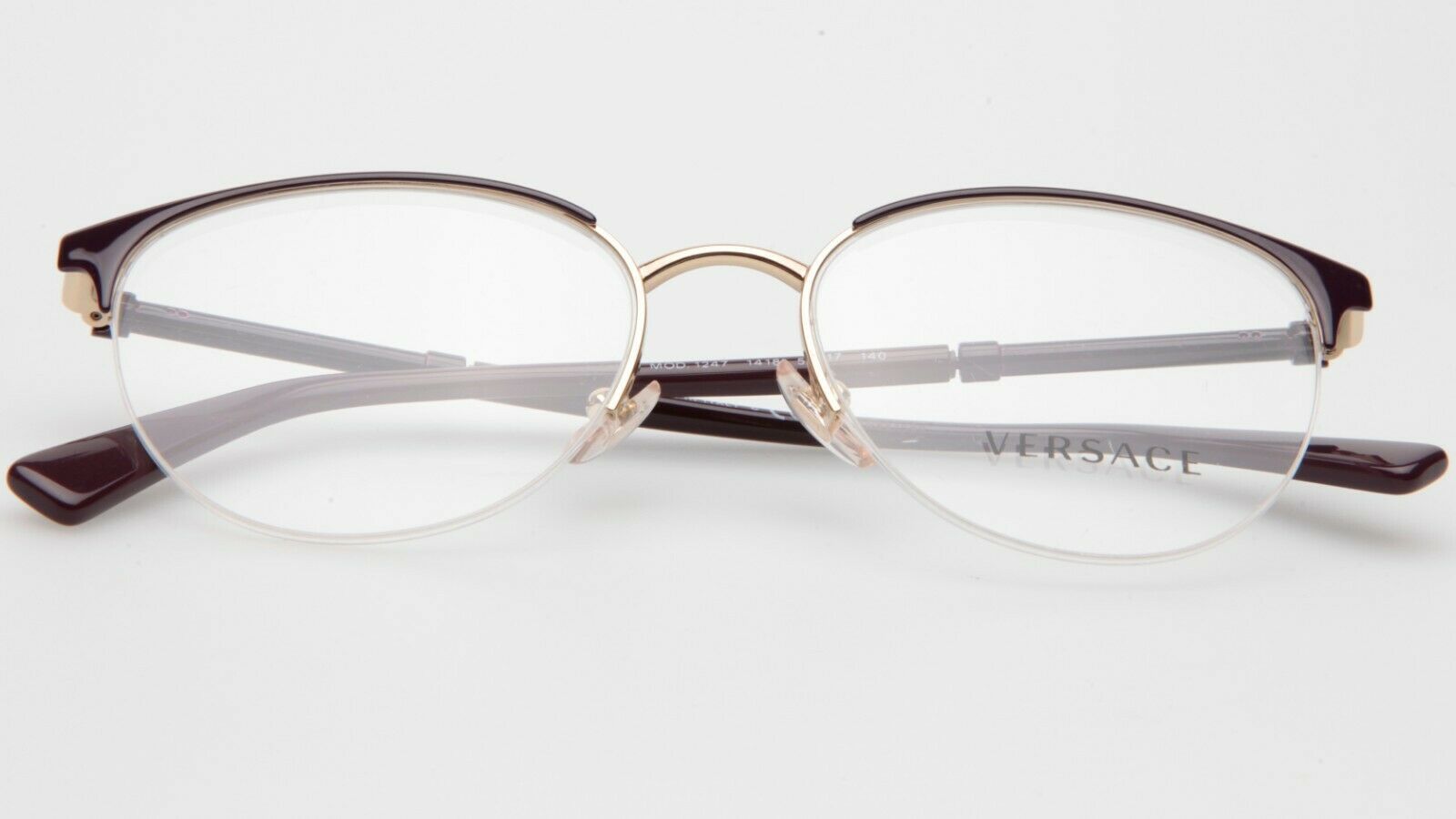 The VERSACE MOD.1247 is a fantastic frame brought to you by VERSACE Eyewear. Made of a Metal frame in a versatile Purple color, these glasses will become your favorite pair of eyeglasses thanks to their top-notch quality and craftsmanship. The MOD.1247 eyeglasses also have nosepads so that they can fit perfectly all day long and can be adjusted to your face.