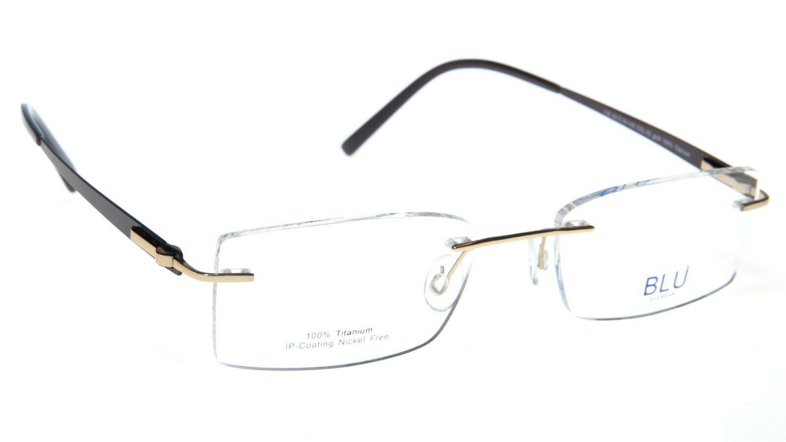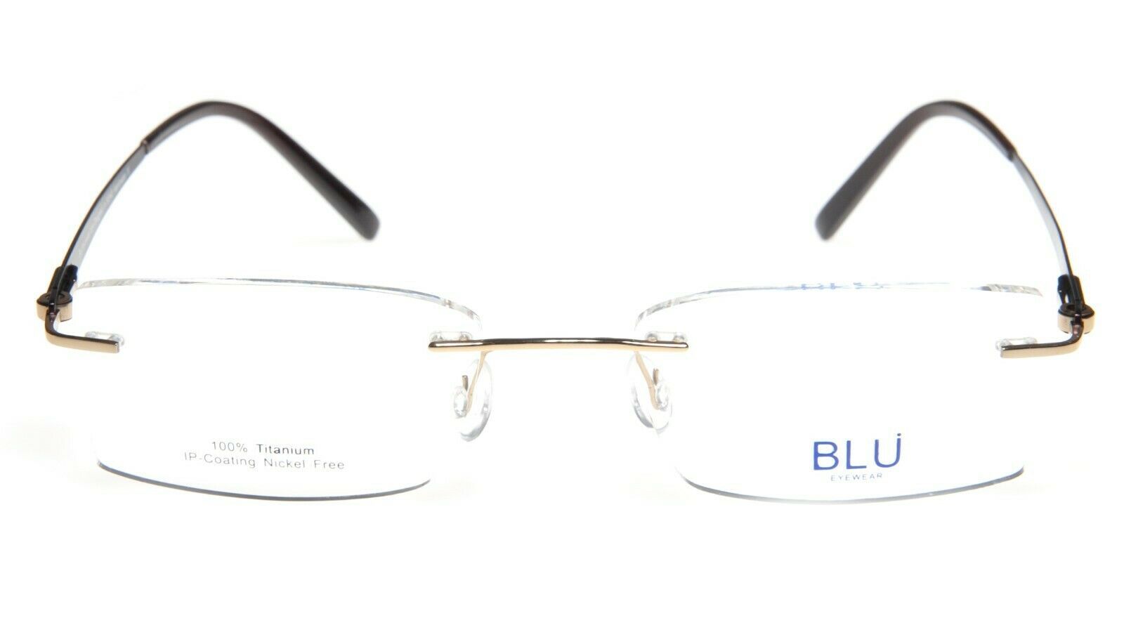 Rimless eyeglasses frames BLU eyewear are a style of eyewear in which lenses are mounted directly to the bridge and side temples. As the name simply states there are no frames around the edge of the lenses with rimless glasses. Rimless glasses are not only fashionable but also practical. Many folks prefer the style because of the barely-there look of rimless eyeglasses. Unlike eyewear with frames, which often become the focal point of a persons ?s face, rimless glasses offer a more versatile look. Their simple yet classy designs can be worn anywhere, anytime and with anything. Rimless eyeglasses frames are the lightest type of all eyeglass frames because there is simply less frame material sitting on your face. A light, rimless eyeglasses frame is generally more comfortable, less noticeable, and it usually stays on better than a heavier frame. A rimless glasses frame hides the least amount of your face and your eyes, whereas other frame styles are designed to-be-seen while covering more of your face.