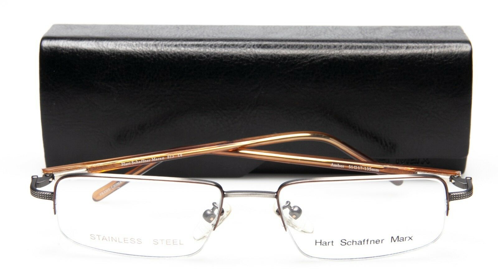 NEW Hart Schaffner Marx 813 Amber GUNMETAL EYEGLASSES GLASSES HSM 51-17-135mm