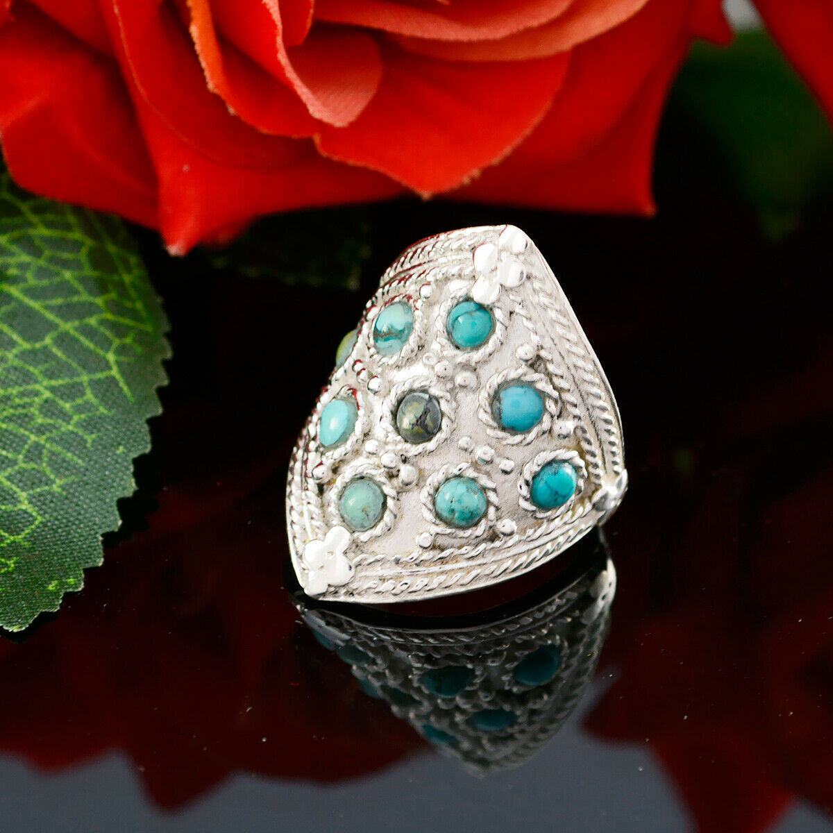 Turquoise 92.5 Sterling Silver Ring Natural Jewelry For New Year Gift US