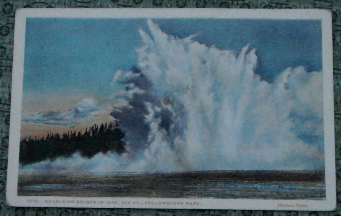You are bidding on this nice Color Tone postcard, Excelsior Geyser in 1888, 300 Feet, Yellowstone Park. The postcard is in good condition, with some light wear at the corners and edges, and some light stains and yellowing on the back and front. There is some yellowing on the back on this card, and some moisture staining on the back and front of this card as well. The postcard is un-used postally, and has no caption on the backโฆIt is 3.5โ by 5.5โ and is a nice Color Tone postcard.