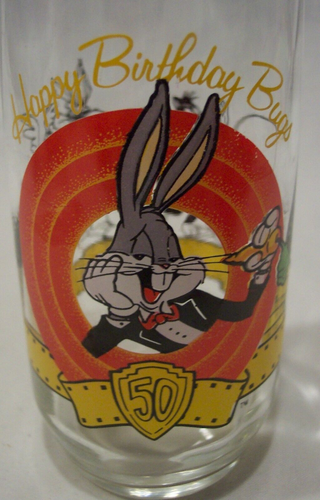 Vintage WB Looney Tunes BUGS BUNNY Happy Birthday GLASS CUP 50TH Anniversary