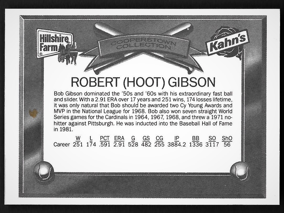 Bob Gibson autograph signed 1989 Kahn's and 50 similar items