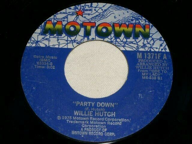 This is the original, vintage 45 rpm phonograph record by Willie Hutch entitled, "Party Down". Flipside: "Just Another Day". Record label: Motown M 1371F.