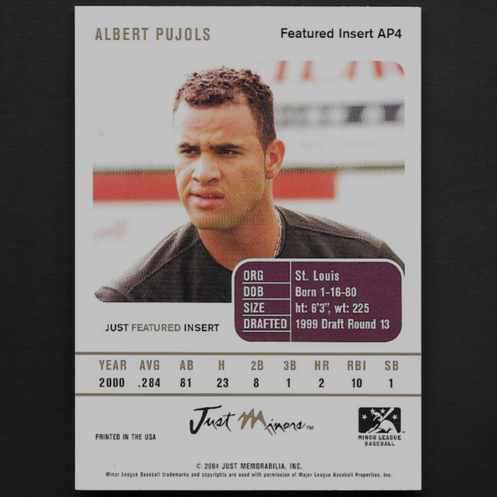 Albert Pujols autograph signed 2004 Just Minors rookie card #4 Cannons/Angels