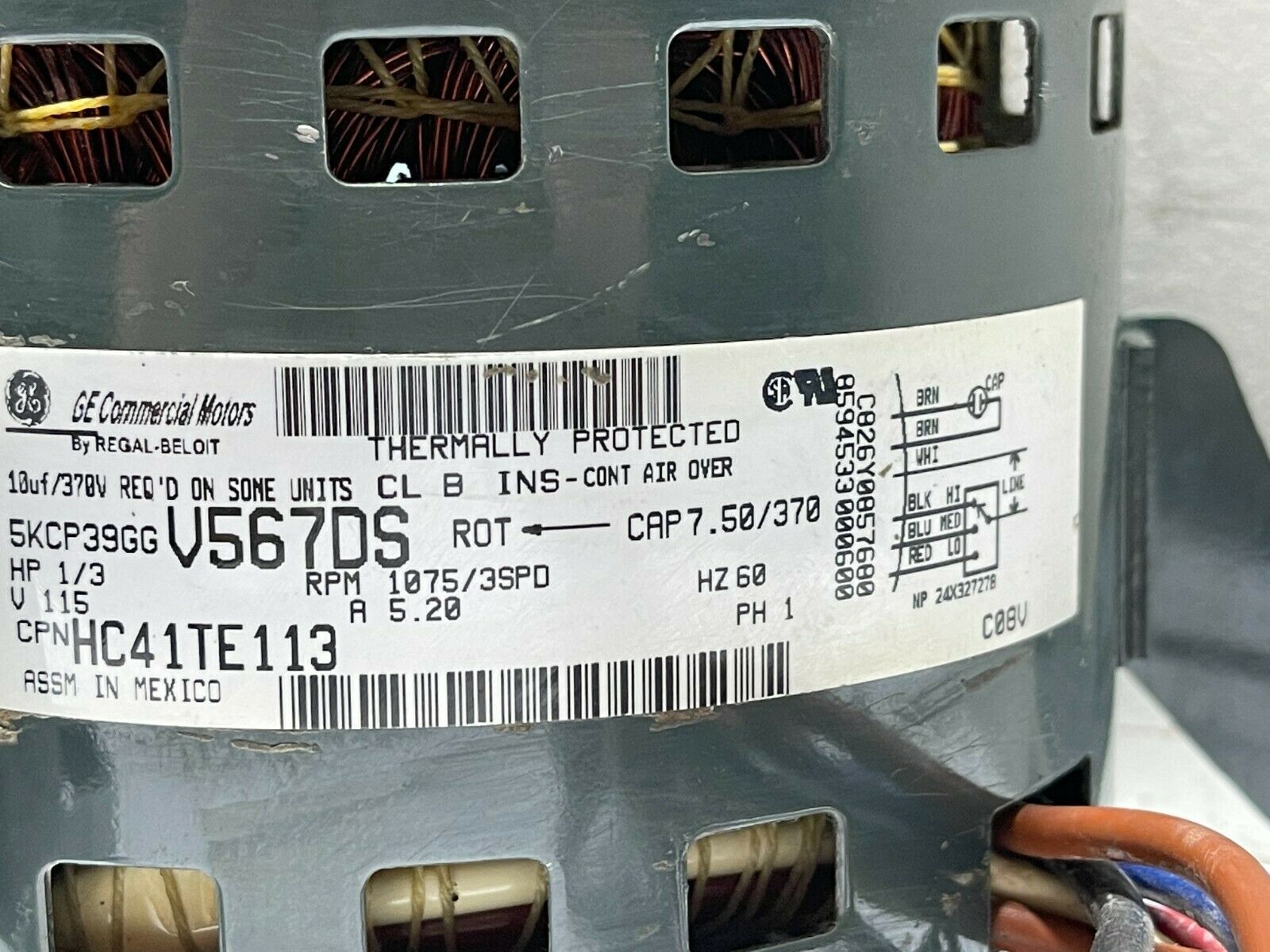 This is GE Motors 5KCP39GGV567DS Blower Motor 1/3HP 1075RPM 3SPD 115V HC41TE113 used part.