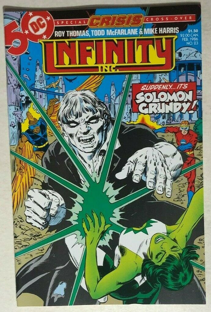 INFINITY INC. #23 (1986) DC Comics Todd McFarlane art Grundy Crisis x-over VF