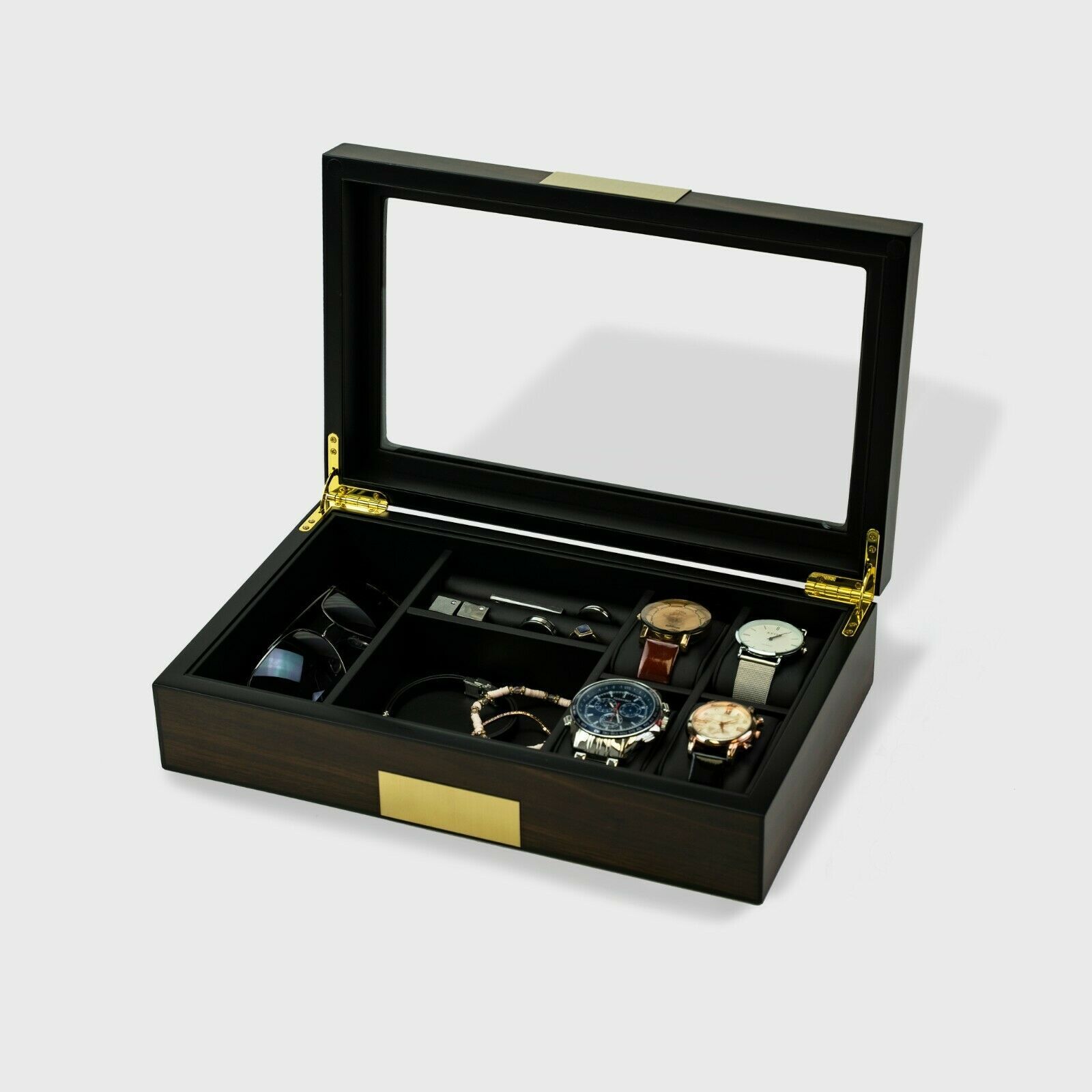 Convenient and practical with storage space for 4 watches, sunglasses, rings, cufflinks and more