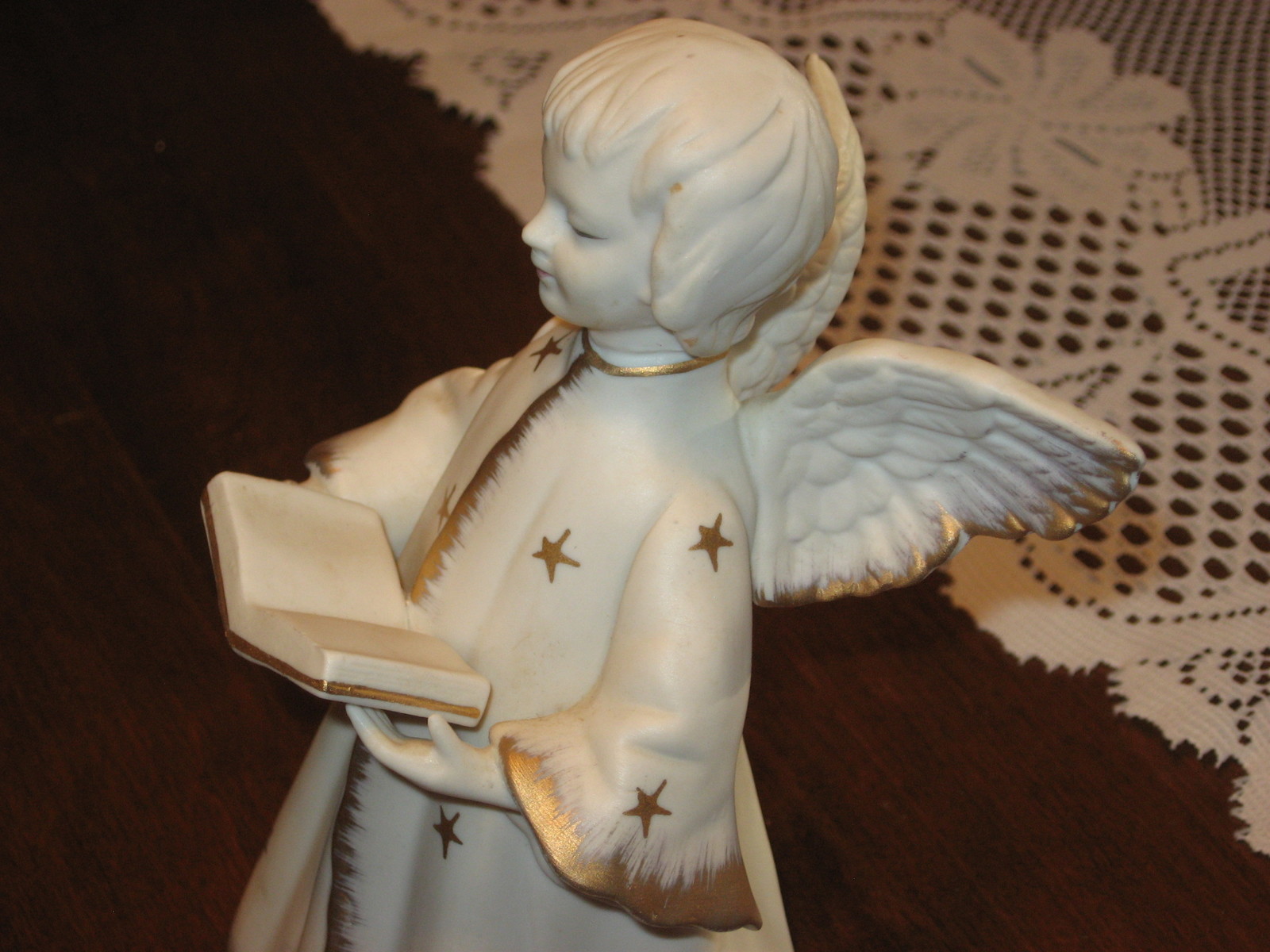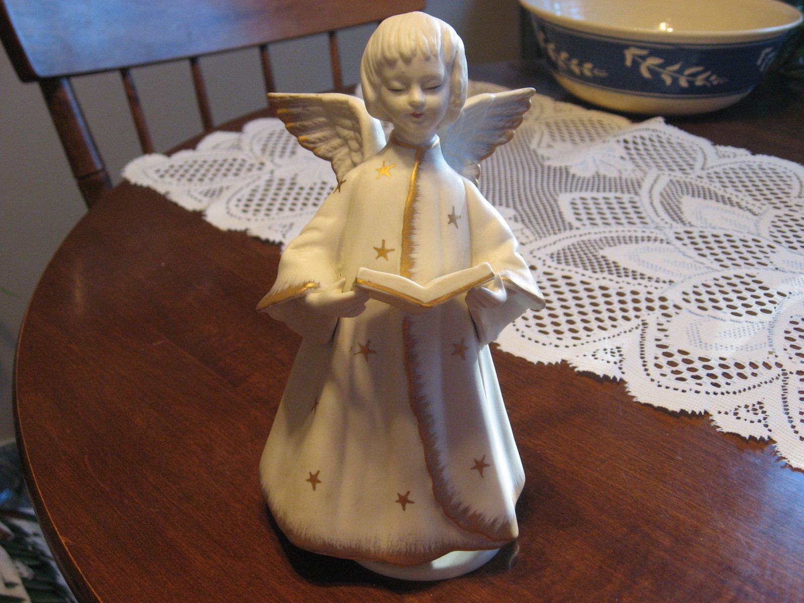 Angel with Hymnal-Musical-"Silent Night"-Schmid Bros-Porcelain-Japan-1970's