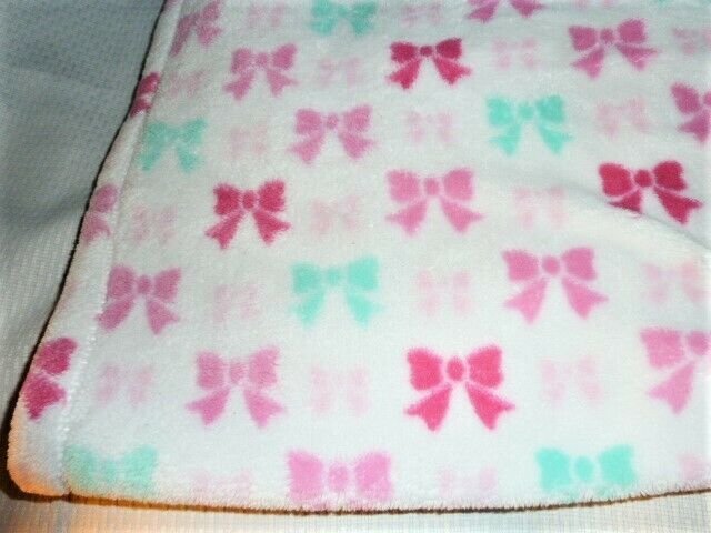 Baby Gear Pink White Aqua Teal Turquoise Blue Green Bow Plush Blanket Girl