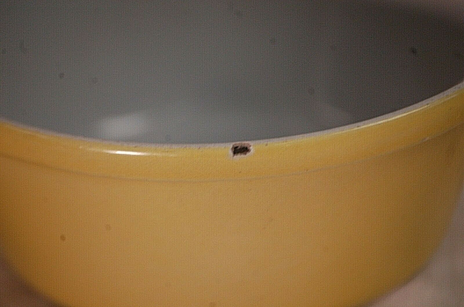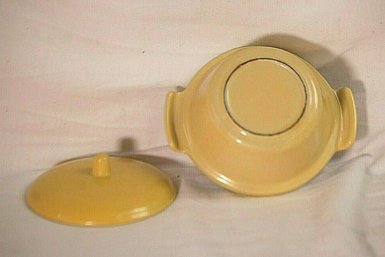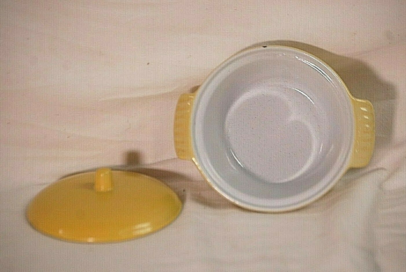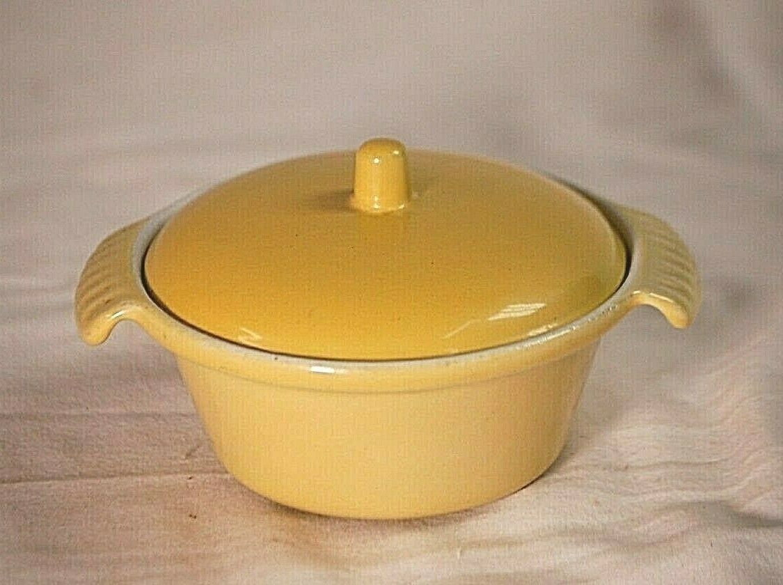 Yellow Enameled Cast Iron Salesman Sample or Individual Covered Casserole Dish
