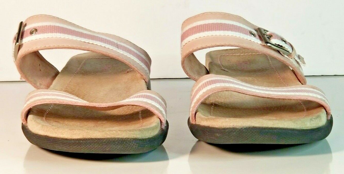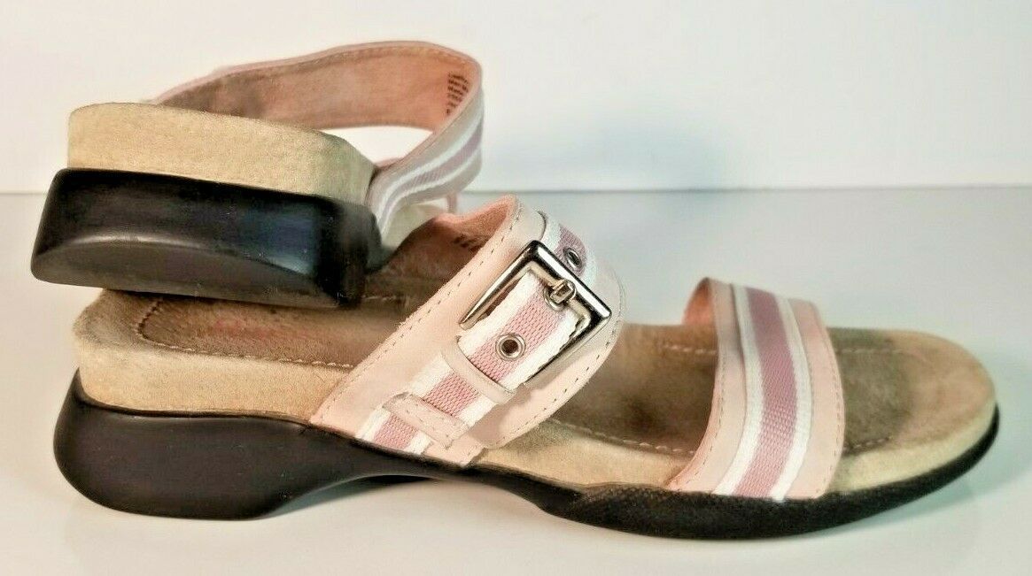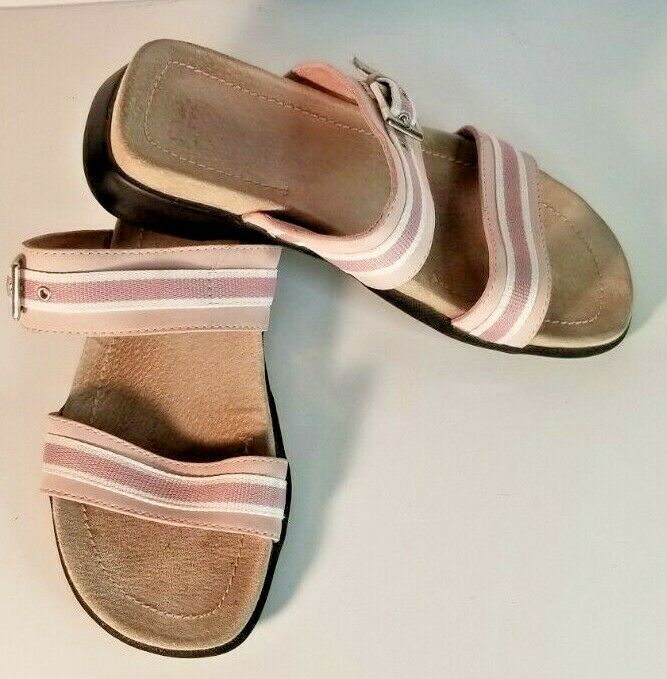 Bass Slides Pink/White Striped Buckle Leather Women Shoes Size 6M Normal wear AA1
