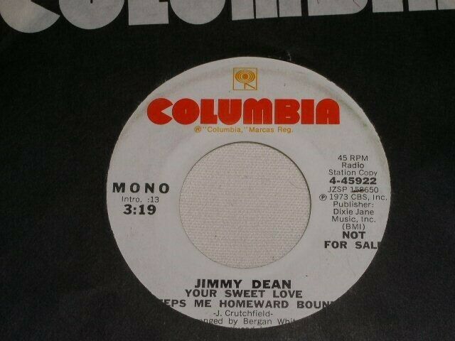 JIMMY DEAN YOUR SWEET LOVE KEEPS ME HOMEWARD BOUND 45 RPM RECORD COLUMBIA PROMO