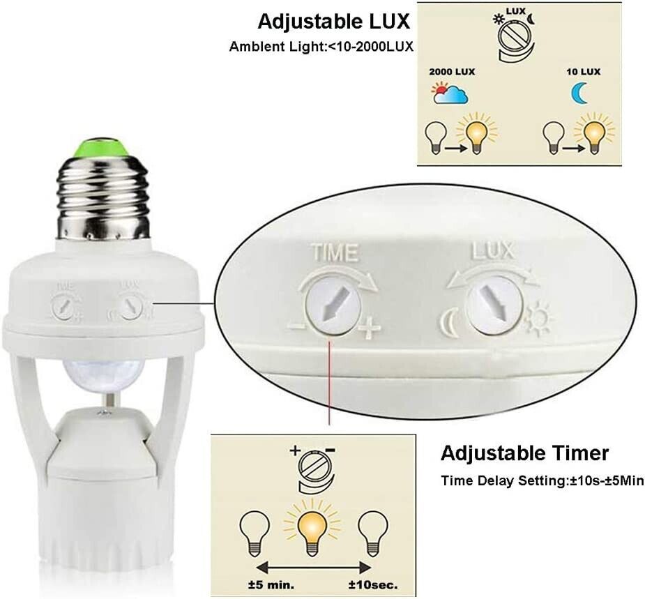 ?Adjustable Bulb Socket Adapter: The time device can set the time and LUX adjustable illumination (3-2000lux), you could set its status and working mode according to your needs.