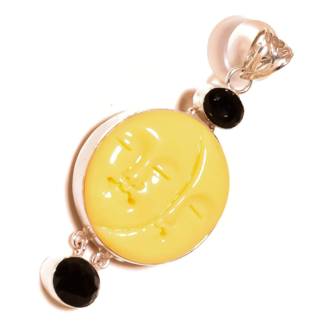 Carved Double Moon Face with Onyx Gemstone and 49 similar items