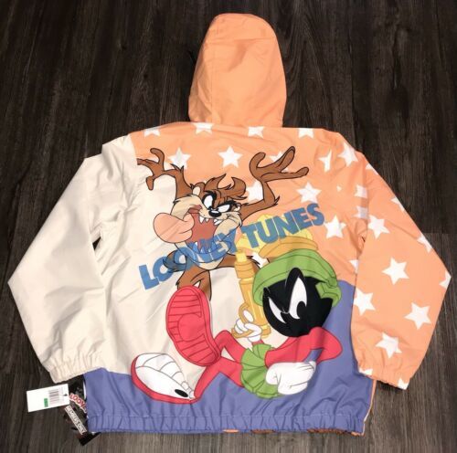NWT Members Only Men Looney Tunes Windbreaker Jacket Limited Edition Orange-M