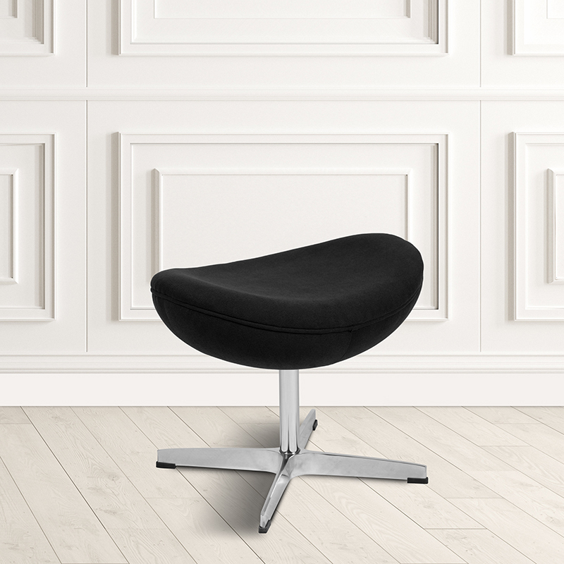 At the end of a long day you need a place to take a rest or put your feet up and relax. Featuring black fabric upholstery, this elegantly designed saddle shaped wing ottoman is just what you need. The 4 point alloy base and curved seat add a modern vibe to this classic piece. This stool ottoman is thickly padded with CAL 117 fire retardant foam to provide supreme comfort. This exceptionally durable ottoman is constructed with a fiberglass shell which will hold up to heavy use. This innovative contemporary ottoman will bring comfort and trend-setting style to your living room, entryway, bedroom or anywhere you need an extra seat. Easily clean this saddle style ottoman with a solvent based cleaner, no water needed, to keep it looking new. This versatile living room ottoman can be used as a seat for extra guests or as a footstool when paired with our fabric wing chair. [ZB-WING-BK-OTT-FAB-GG] Dimension: