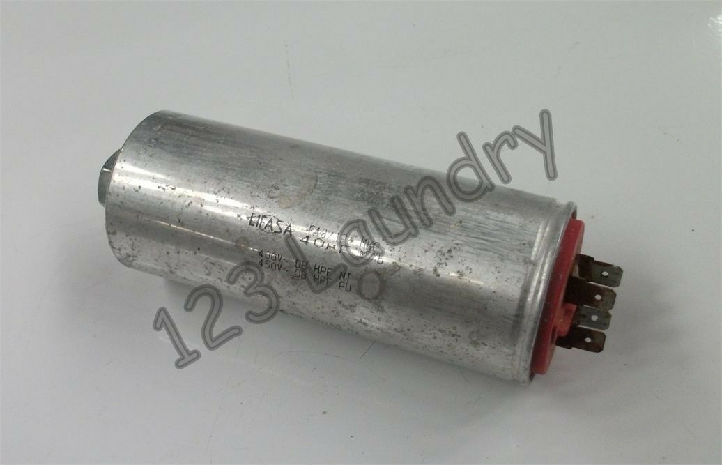 Description: Capacitor 25MF 450V 50/60Hz For Alliance, Speed Queen, Unimac, Huebsch, Ipso, Whirlpool. Replacement for P/N: G123653, 123653.