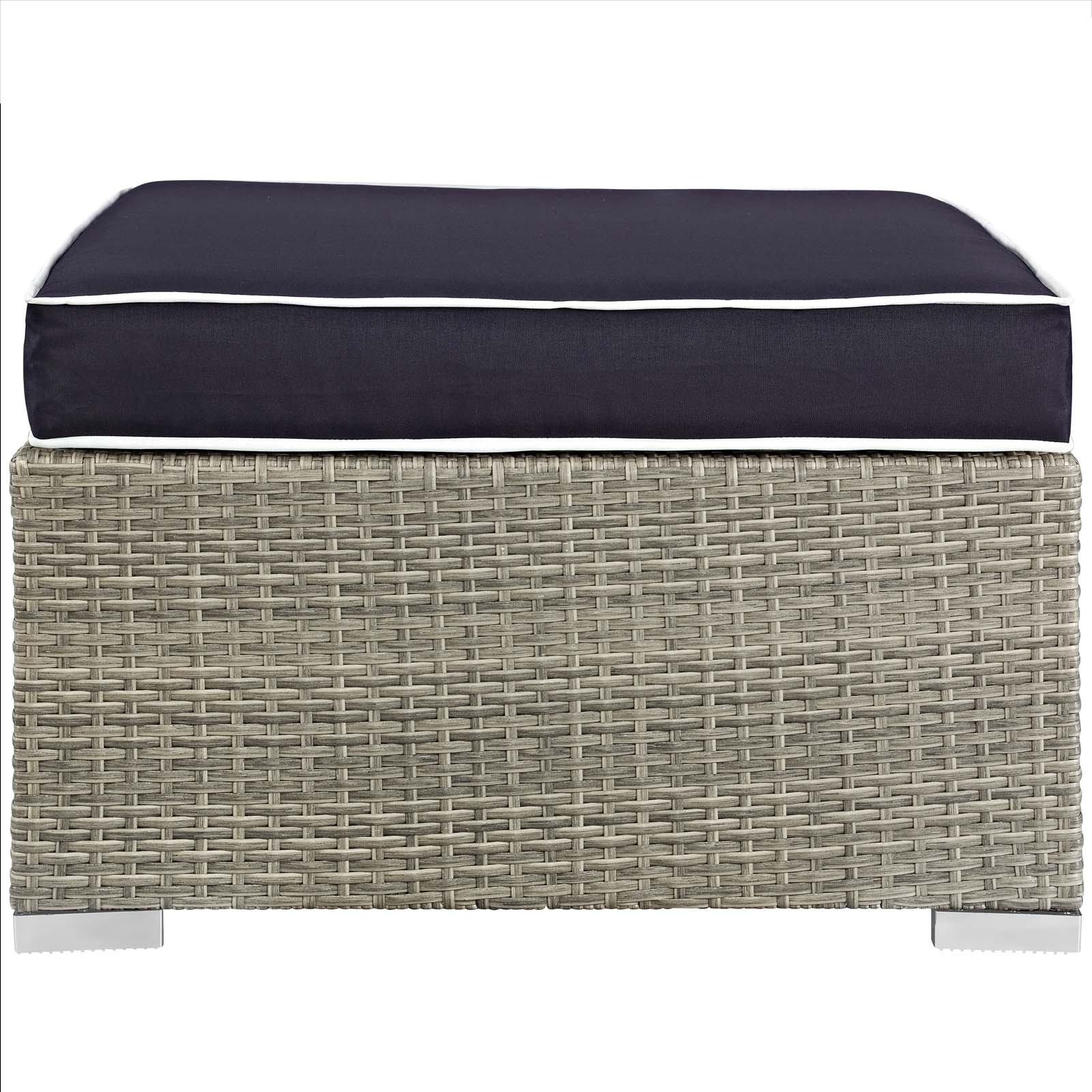 Repose Outdoor Patio Upholstered Fabric Ottoman Light Gray Navy EEI-2962-LGR-NAV