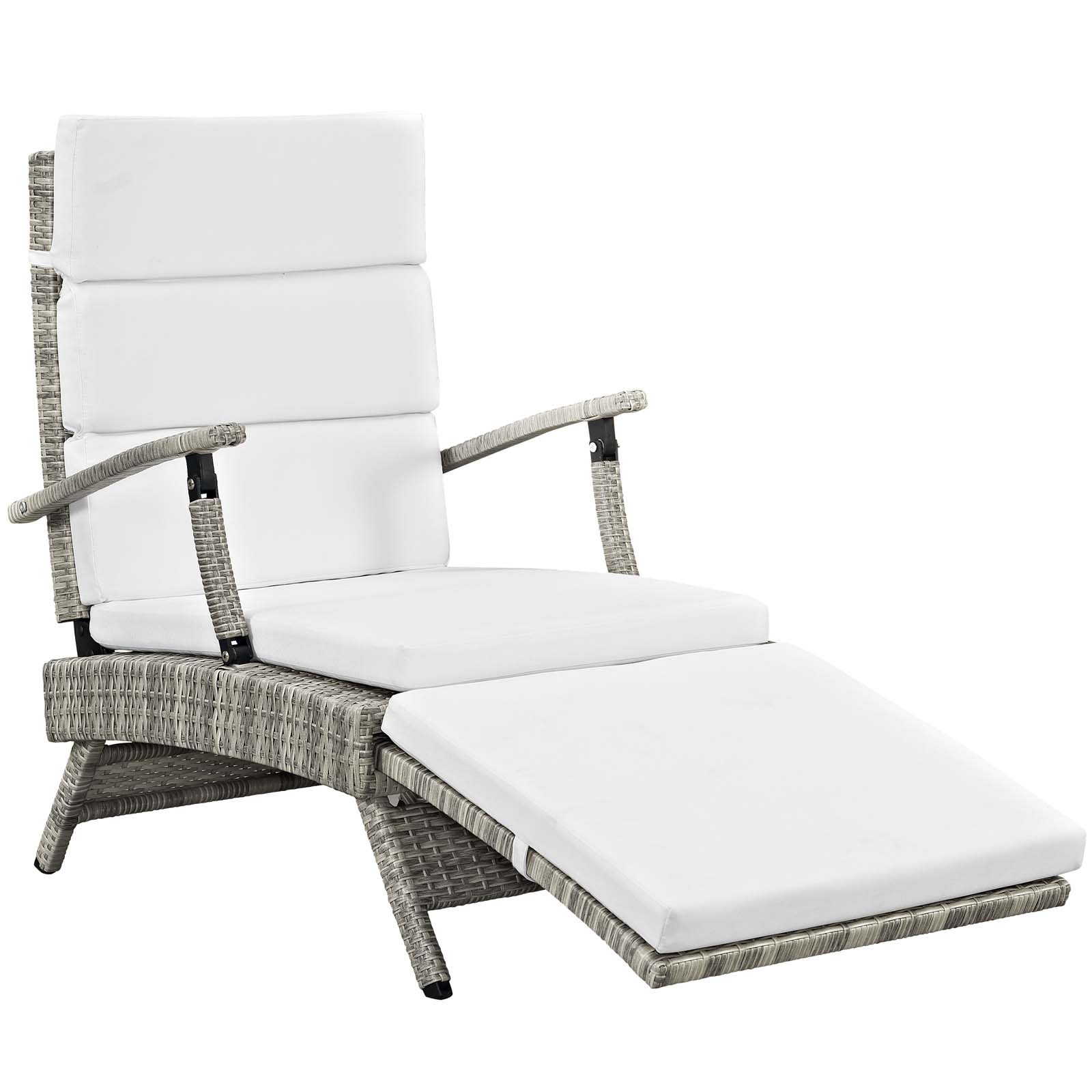 Envisage Chaise Outdoor Patio Wicker Rattan Lounge Chair Light Gray White EEI-23