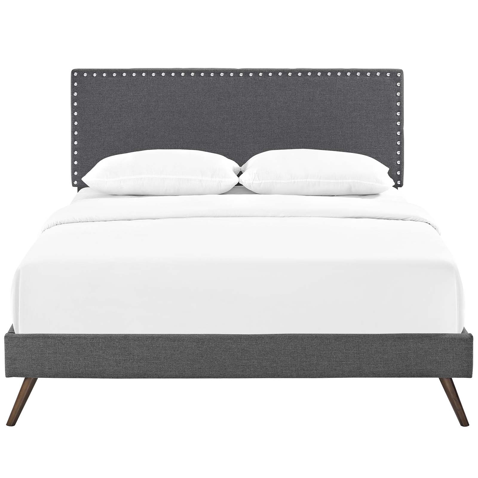Macie King Fabric Platform Bed with Round Splayed Legs Gray MOD-5965-GRY