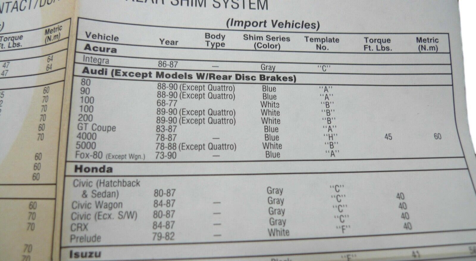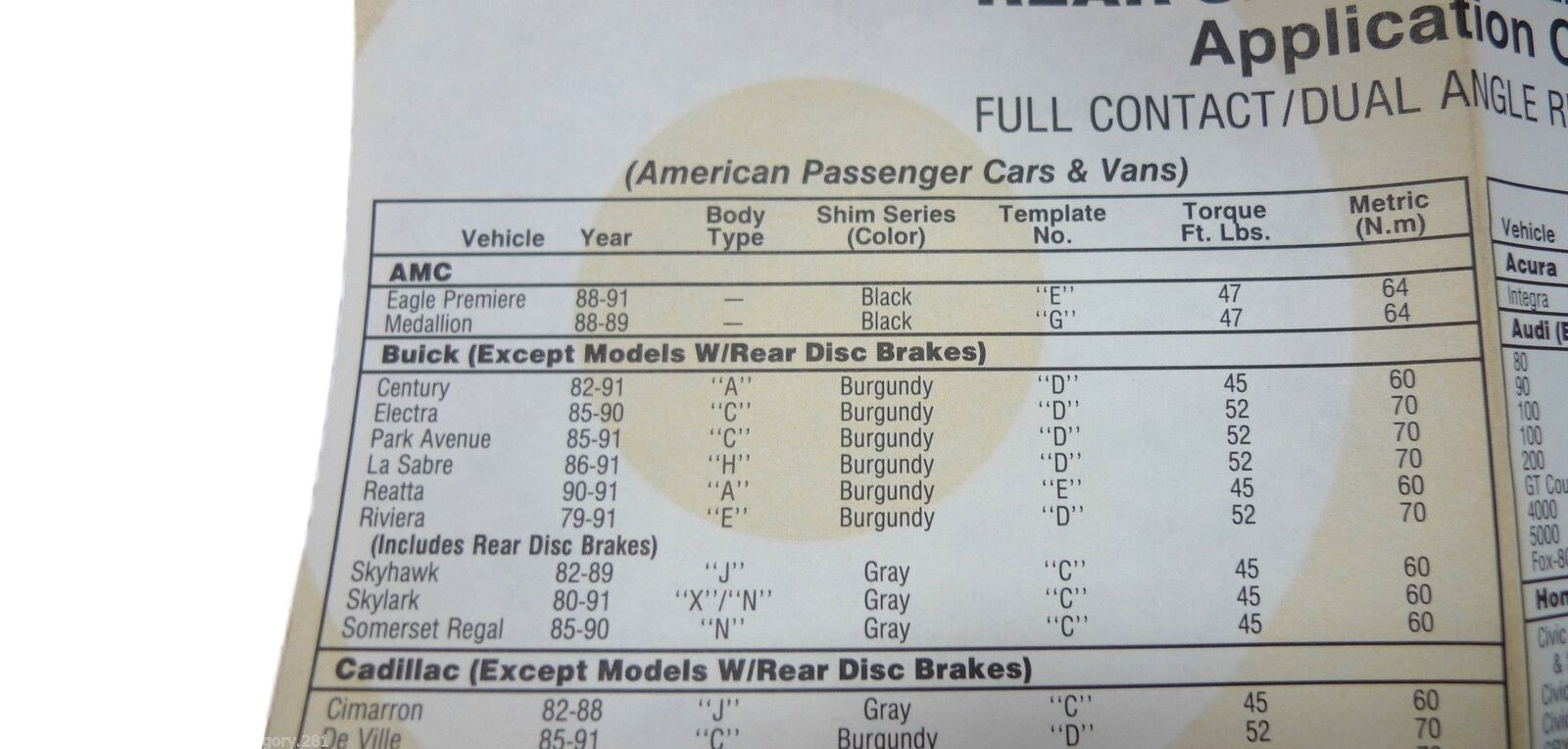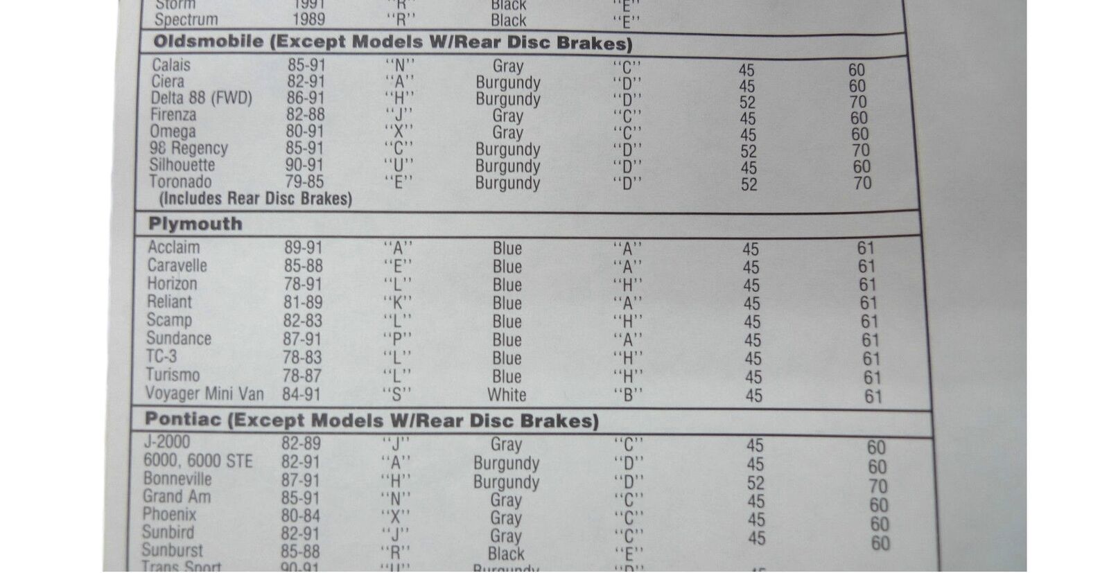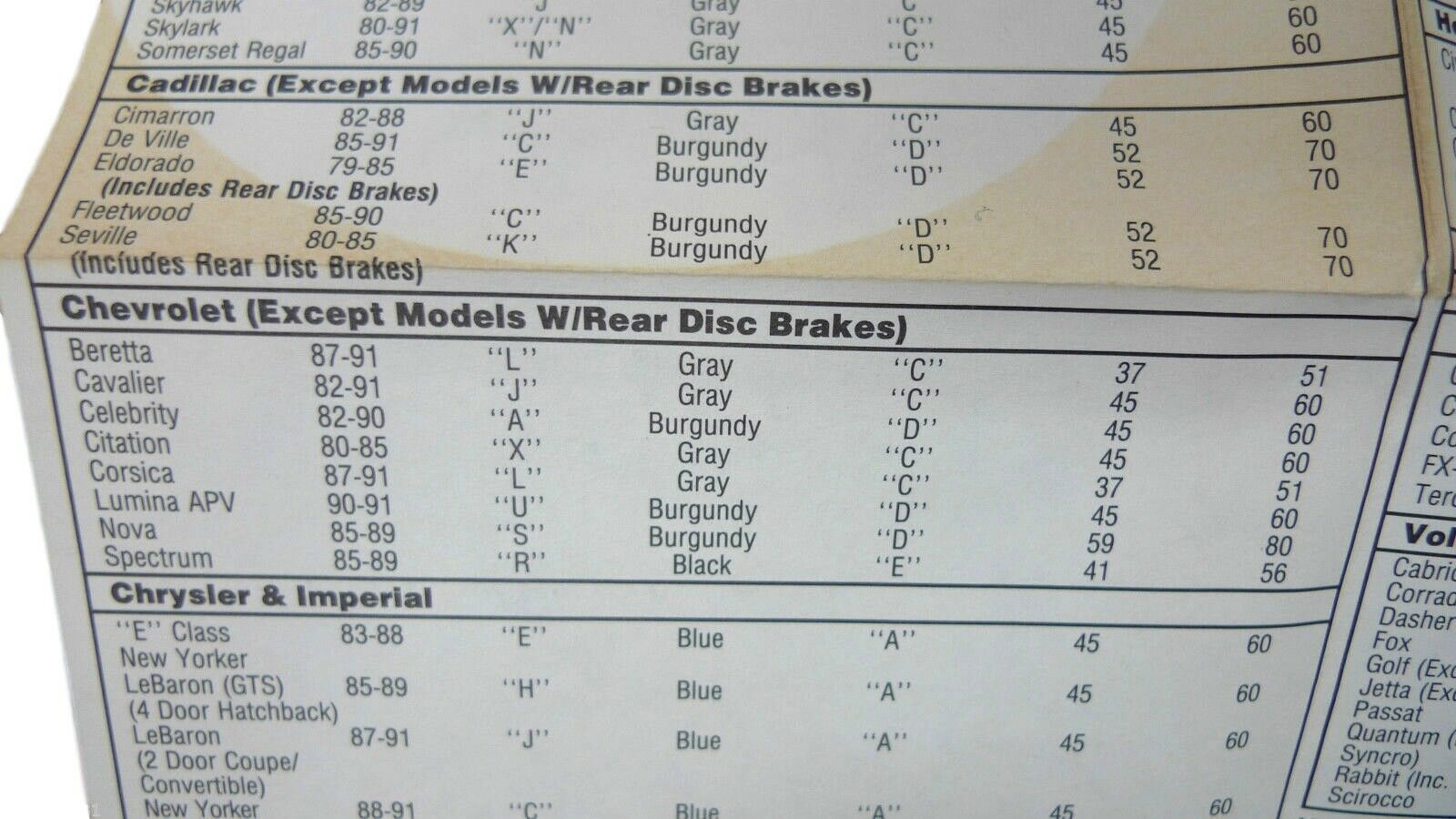 Applications: Fits 1968-1991 AMC, Buick, Cadillac, Chevrolet, Chrysler Imperial, Ford, Dodge, Geo, Oldsmobile, Plymouth, Pontiac, Acura, Audi, Honda, Isuzu, Toyota, and Volkswagen various years and models. (Please independently verify compatibility.) Please see photos of application chart.