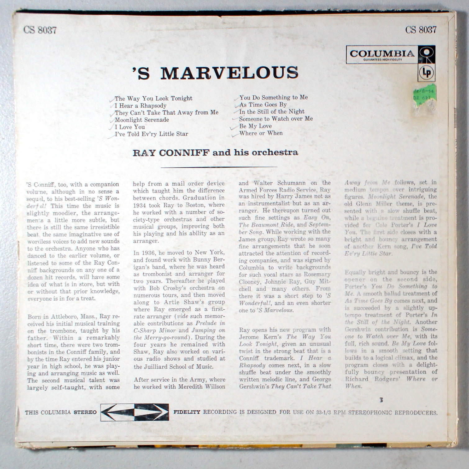 'S Marvelous, is an album by Ray Conniff and His Orchestra. The album debuted on Billboard magazine's popular album chart on December 23, 1957, peaked at No. 10, and remained on that chart for 31 weeks. It was certified by the RIAA as a gold record. AllMusic later gave the album a rating of four-and-a-half stars. Reviewer William Ruhlmann called it "a set of lively arrangements of standards featuring a wordless chorus."