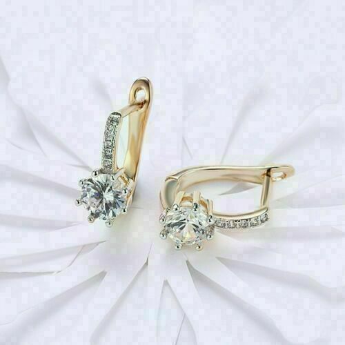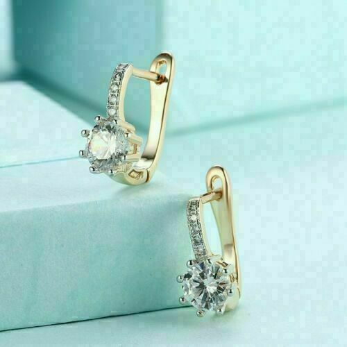 1.20 CT Round Cut Diamond 14k Yellow Gold FN Silver Small Drop Dangle Earrings