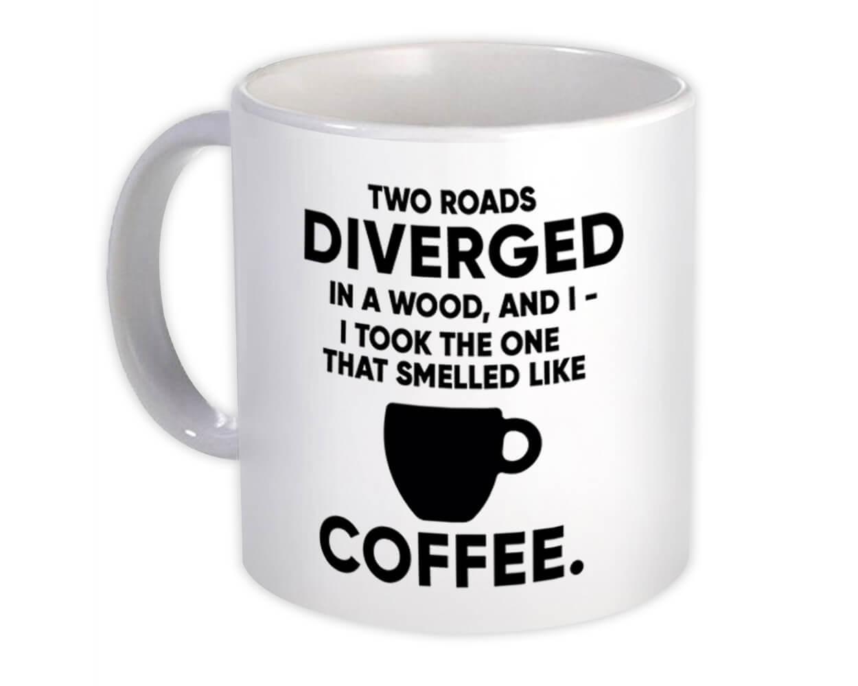 Two Roads Diverged Smelled Like Coffee : Gift Mug Funny Coffee Lover