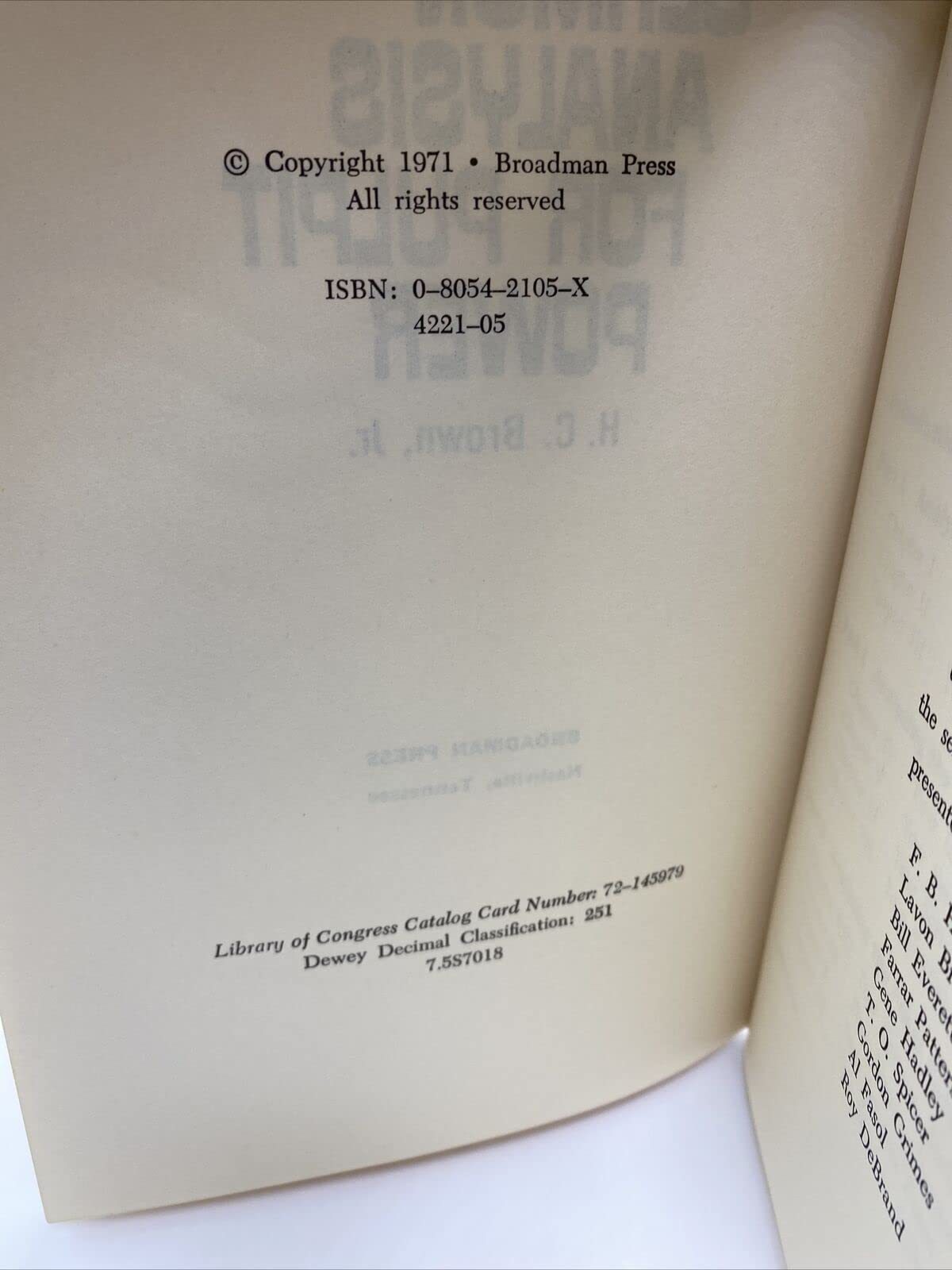 Sermon analysis for pulpit power [Paperback] Brown, Jr., H. C.