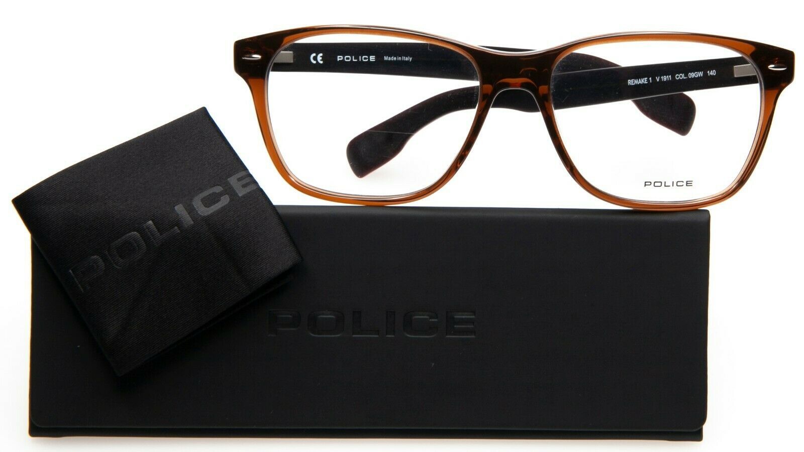 NEW POLICE REMAKE 1 V1911 09GW BROWN TRANSPARENT EYEGLASSES W/ CASE 53mm Italy