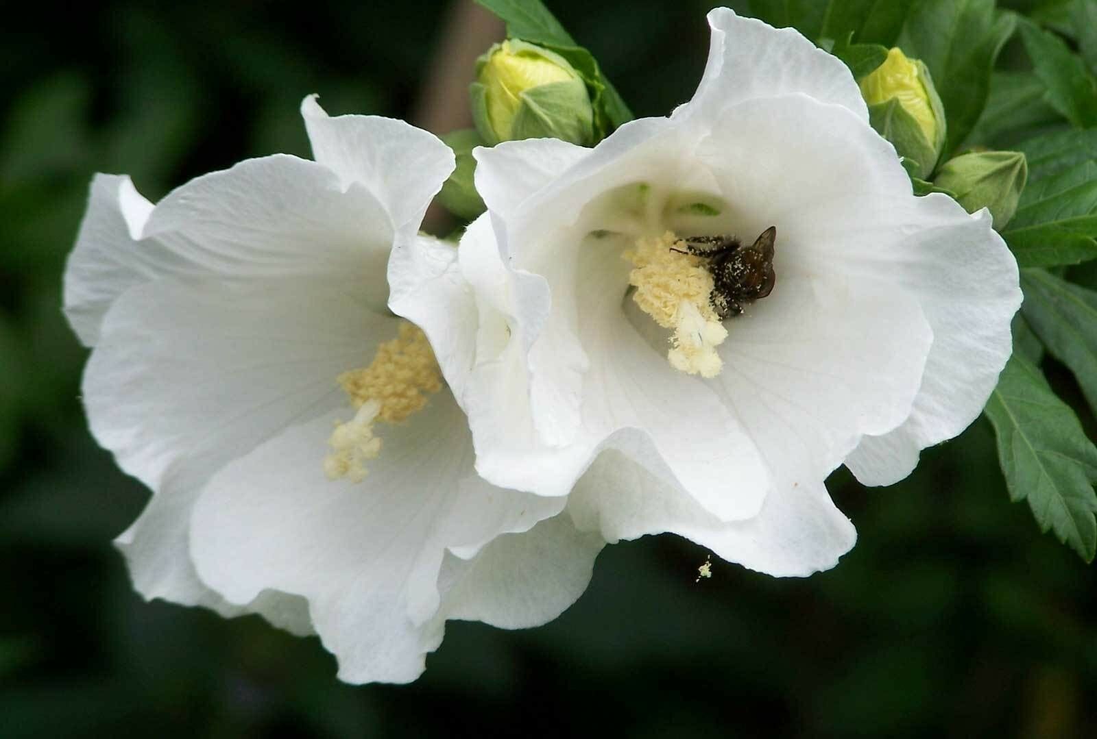 Hibiscus syriacus Snowdrift can grow up to about 10 feet tall and likes to live in the sun or partial shade. These gorgeous blossoms show up in the middle of the Summer and stick around until early Fall. The flowers, leaves and roots are edible and are normally found in salads or used as vegetables. The leaves can also be dried and used to make a tea. The younger the leaves aqnd flowers the more tender they are. The roots are fiberous and lacking much flavor, but if you know how to season things it can be delicious. Hibiscus plants in general are a nectar source for the Cloudless Sulphur, Orbed Sulphur, Disguised Scrub-Hairstreak, Yojoa Scrub-Hairstreak, Dukes Skipper, Large Orange Sulphur, White Angled-Sulphur, Yellow Angled-Sulphur, and Monk butterflies, and larval hosts for the Bumelia Webworm and Pearly Wood-nymph moths, and the Cloudless Sulphur butterfly. USDA Hardiness Zones 5 to 8.