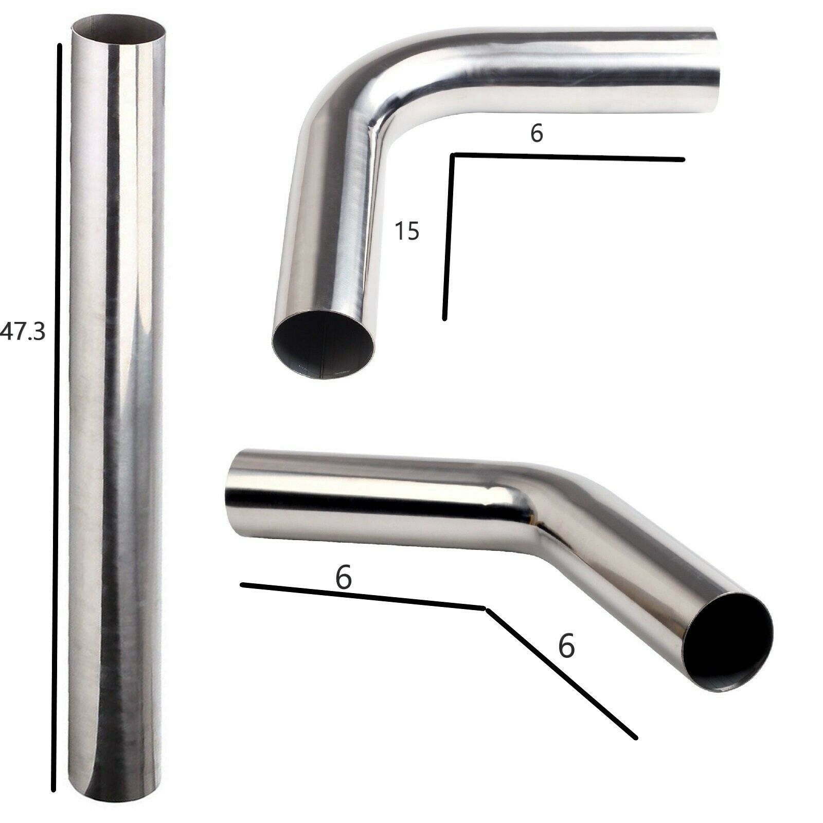 2.25" Straight + 45 + 90 Degree Bend Aluminized Steel Exhaust Tube Pipe KIT 3PC