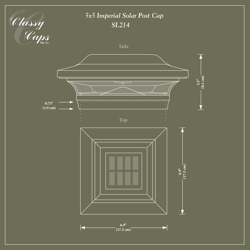 The modern yet elegant Imperial Solar Post Cap offers a clean contemporary design that is unequalled in performance. Its rugged cast aluminum construction with powder coated finish means no future painting. Will fit over an actual 5" x5" post.