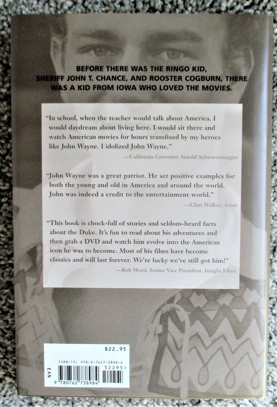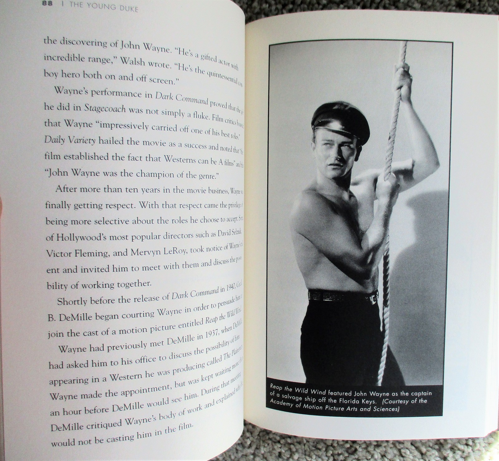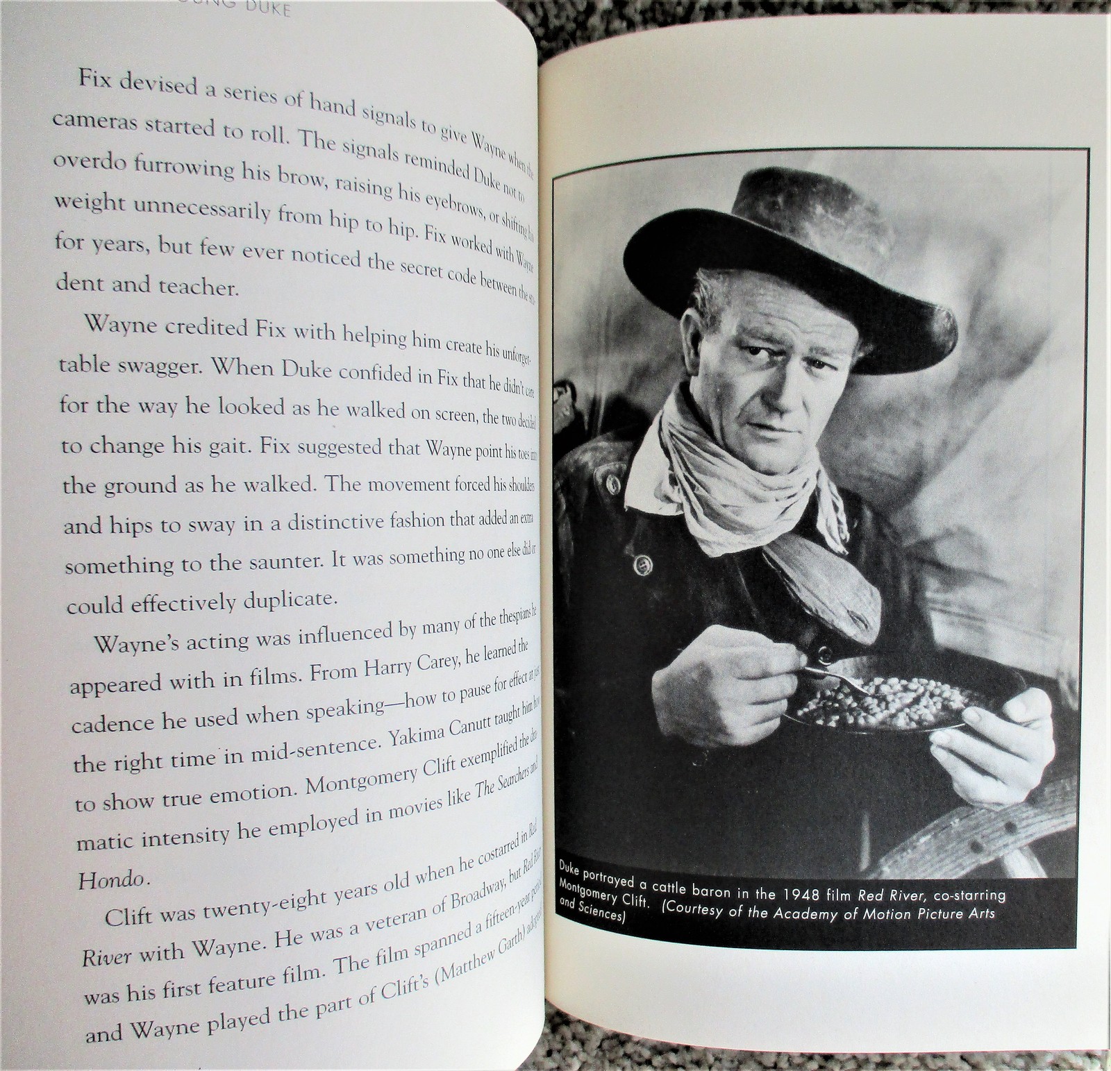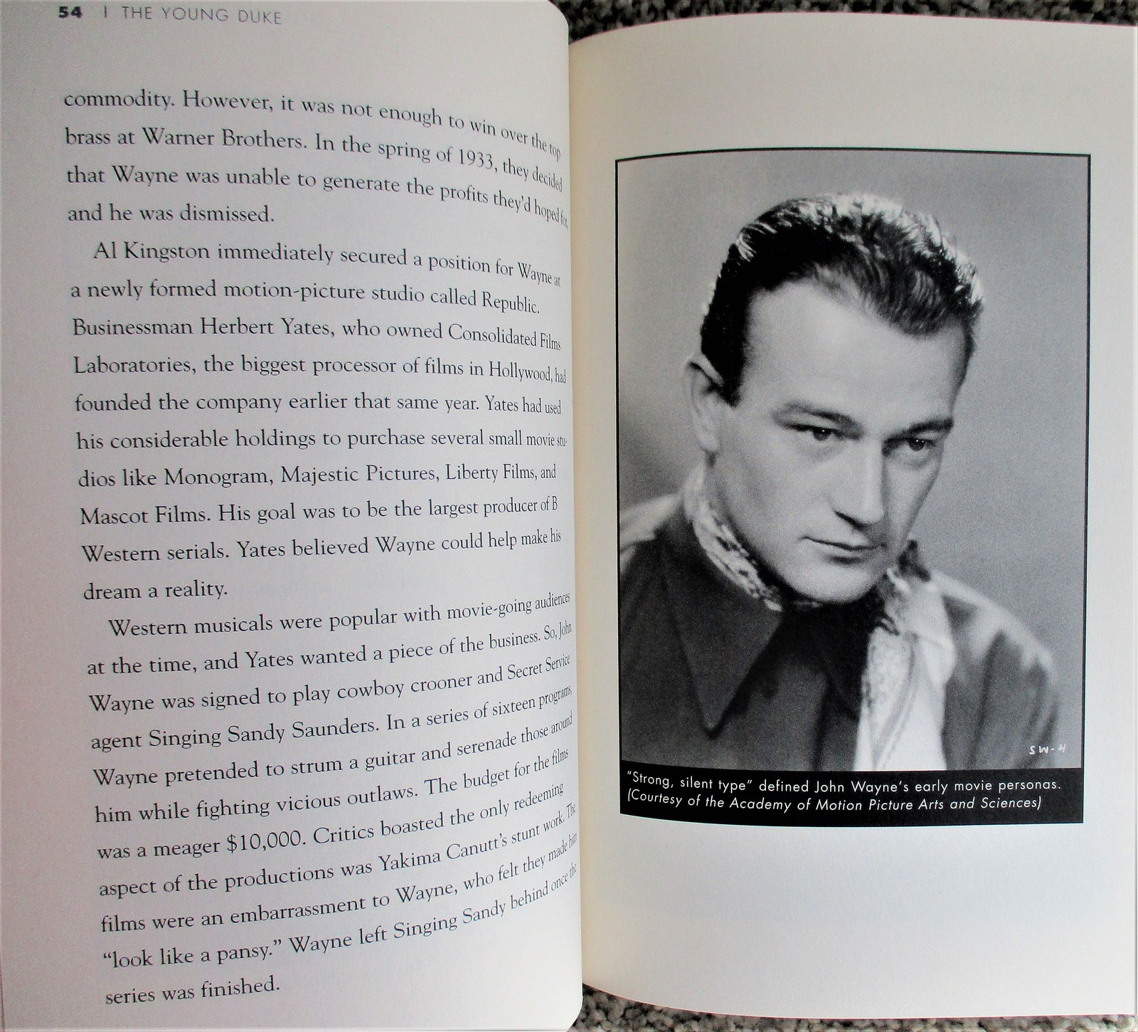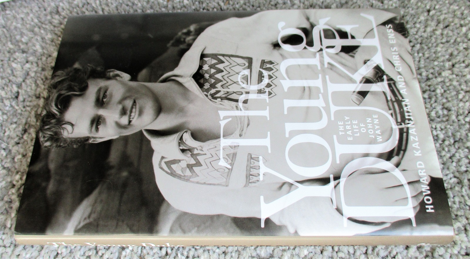 6" x 9.5", 194 page hardcover with dustjacket titled THE YOUNG DUKE: THE EARLY LIFE OF JOHN WAYNE by Howard Kazanjian and Chris Enss/ A TwoDot Book, ISBN # 978-0-7627-3898-4, First Edition, Second Printing, copyright 2007/ Written in cooperation with the Wayne family, a comprehensive biography of the early years of the Hollywood legend follows Marion Morrison from his birth in Winterset, Iowa, through his childhood and young adulthood, to his first roles as John Wayne in Hollywood.