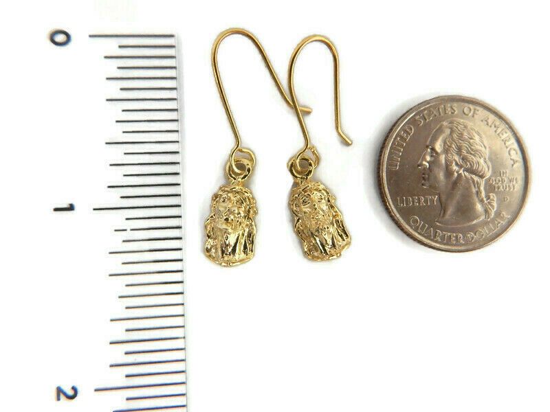 Authenticity Guarantee Jesus Christ Face Earrings 14k Yellow Gold.