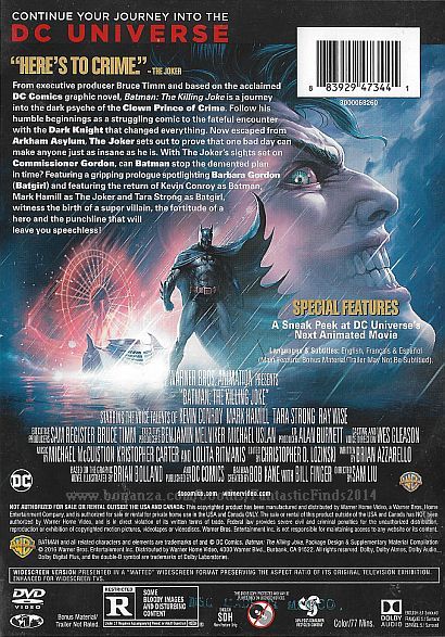 Plot: The Batman and the Joker have their defining face-off in this much-anticipated animated adaptation of the acclaimed 1988 Alan Moore/Brian Bolland graphic novel. As the Clown Prince of Crime revisits the tragic circumstances of his origins, he mounts a brutal psychological war against the Dark Knight that’ll have dire and life-altering consequences for both Barbara and Jim Gordon. 030621-030621P-DVD2