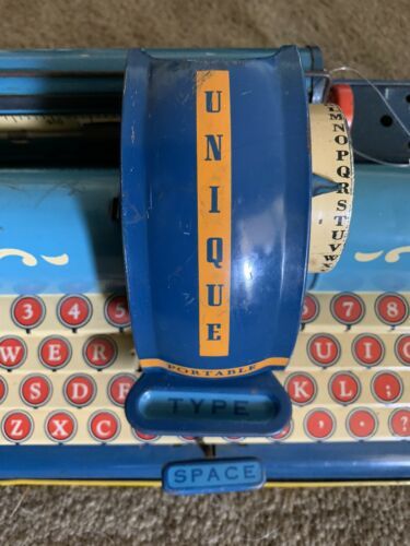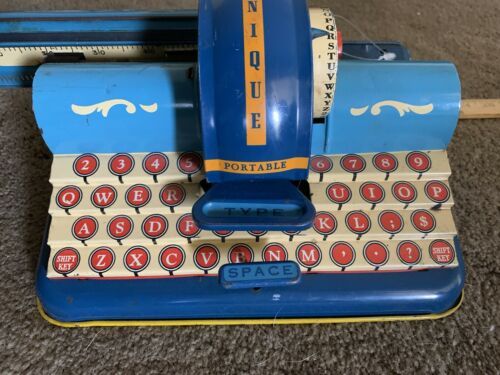 Vintage TIN Litho tragbare Schreibmaschine Spielzeug - Unique Art Mfg. Co. - Made in USA Artikel in der Garage gelagert Die meisten Dinge bewegen keinen größeren Rost verkauft wie er ist