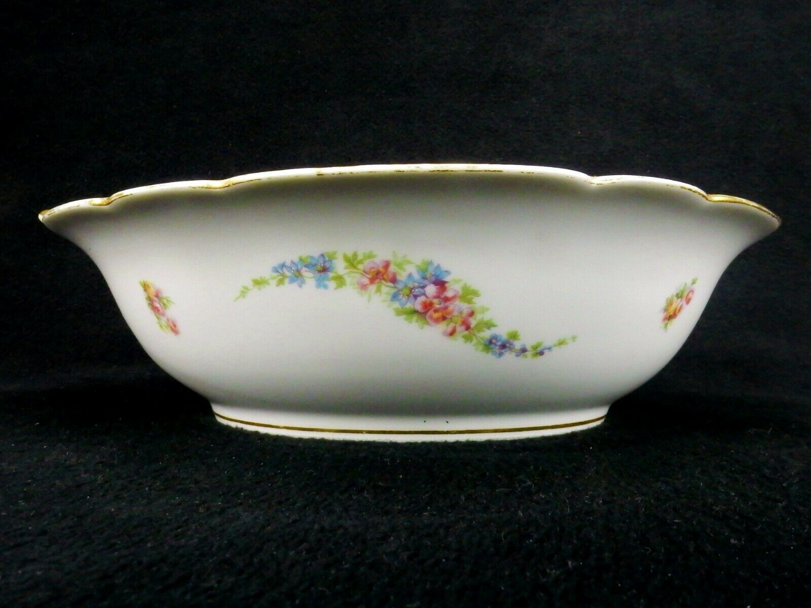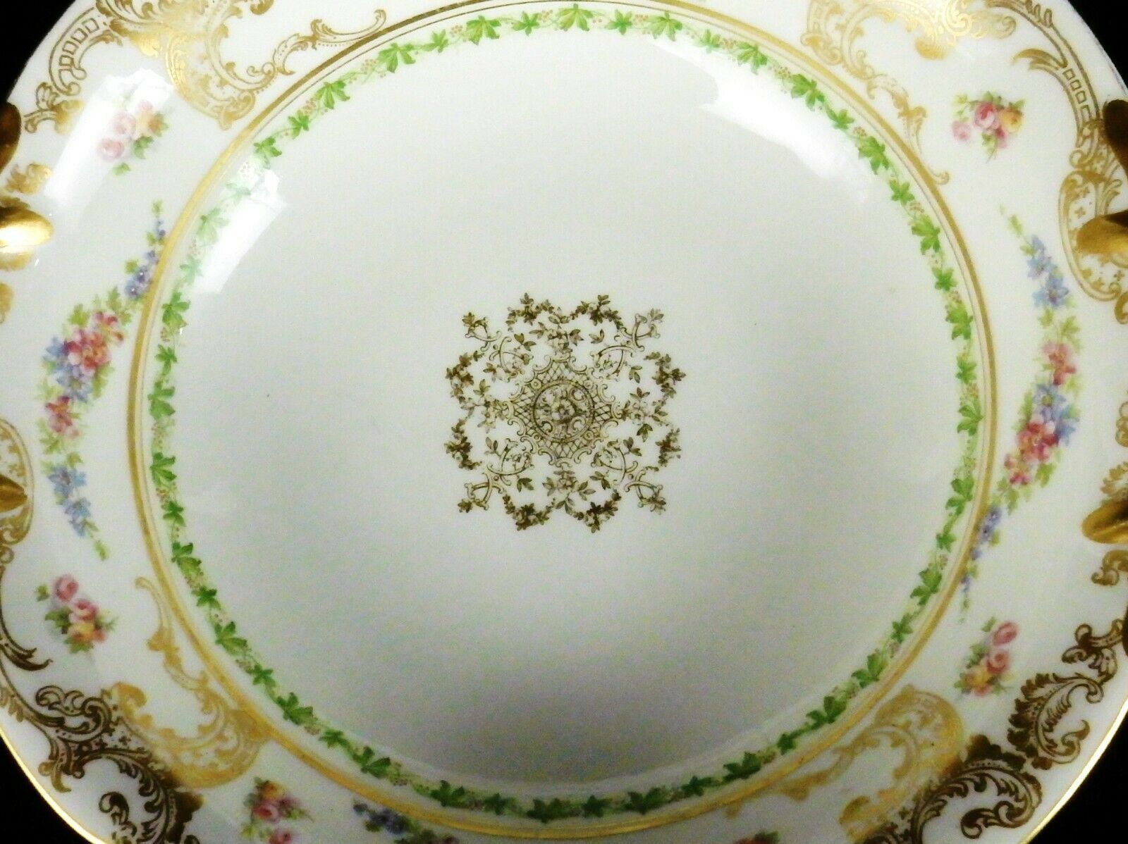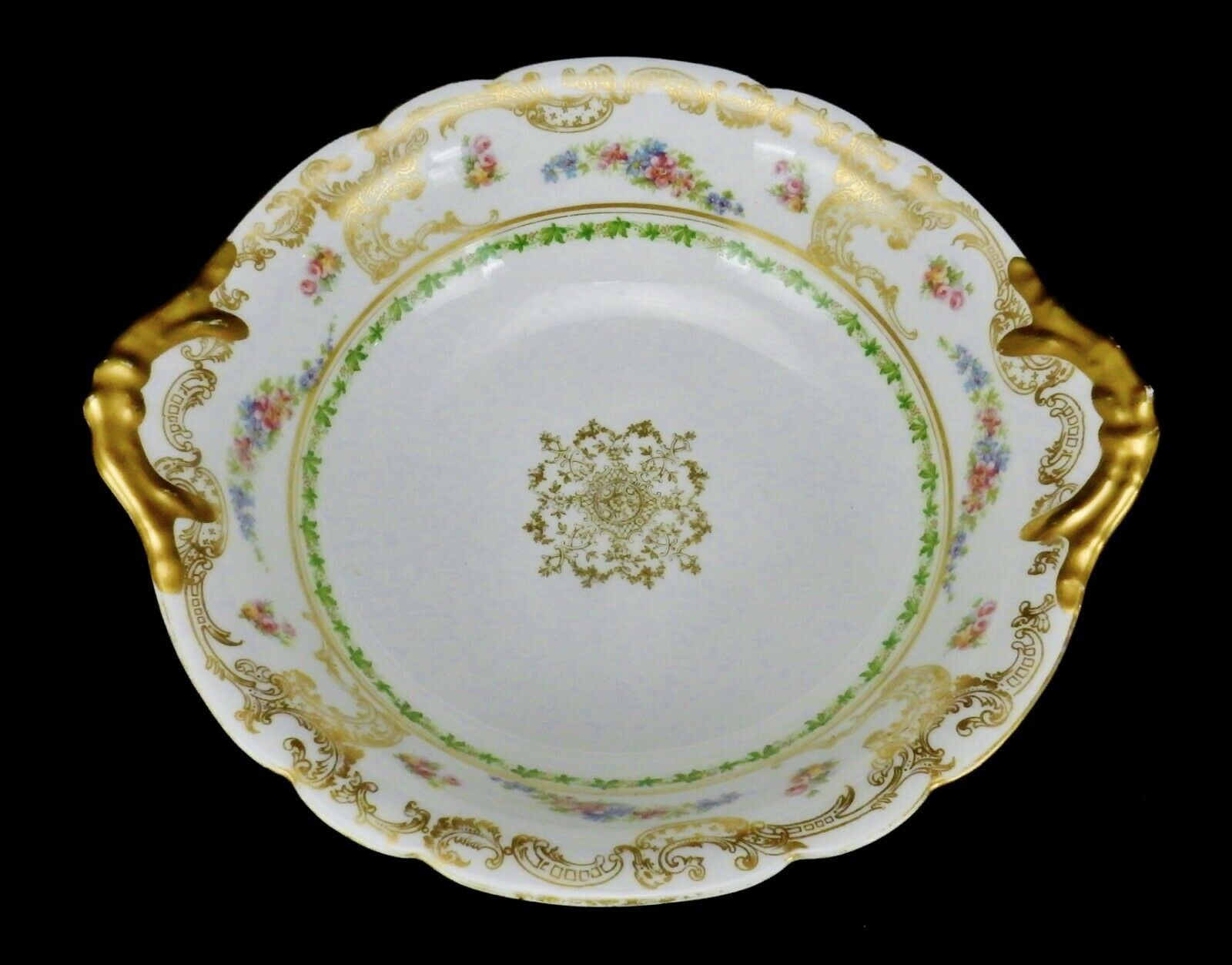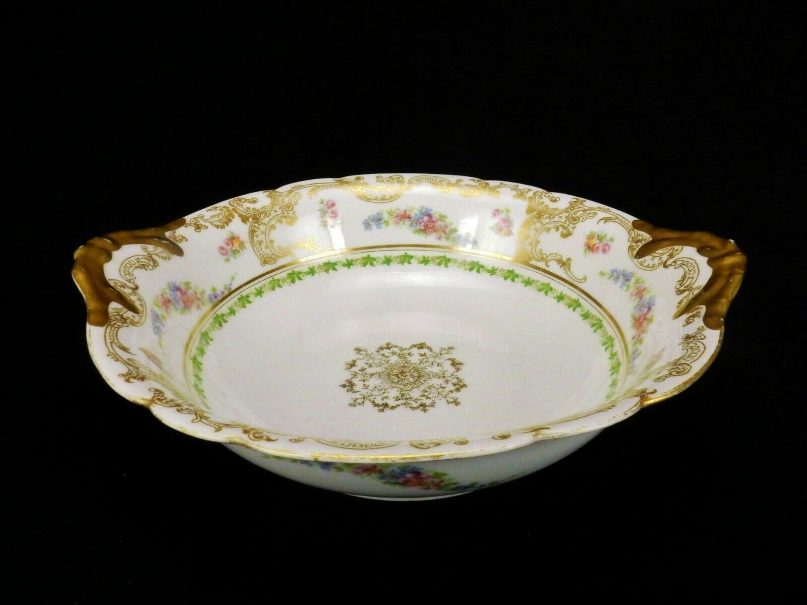 Antique Porcelain Serving Bowl, Jean Pouyat, Limoges, France, Floral & Gold Tone