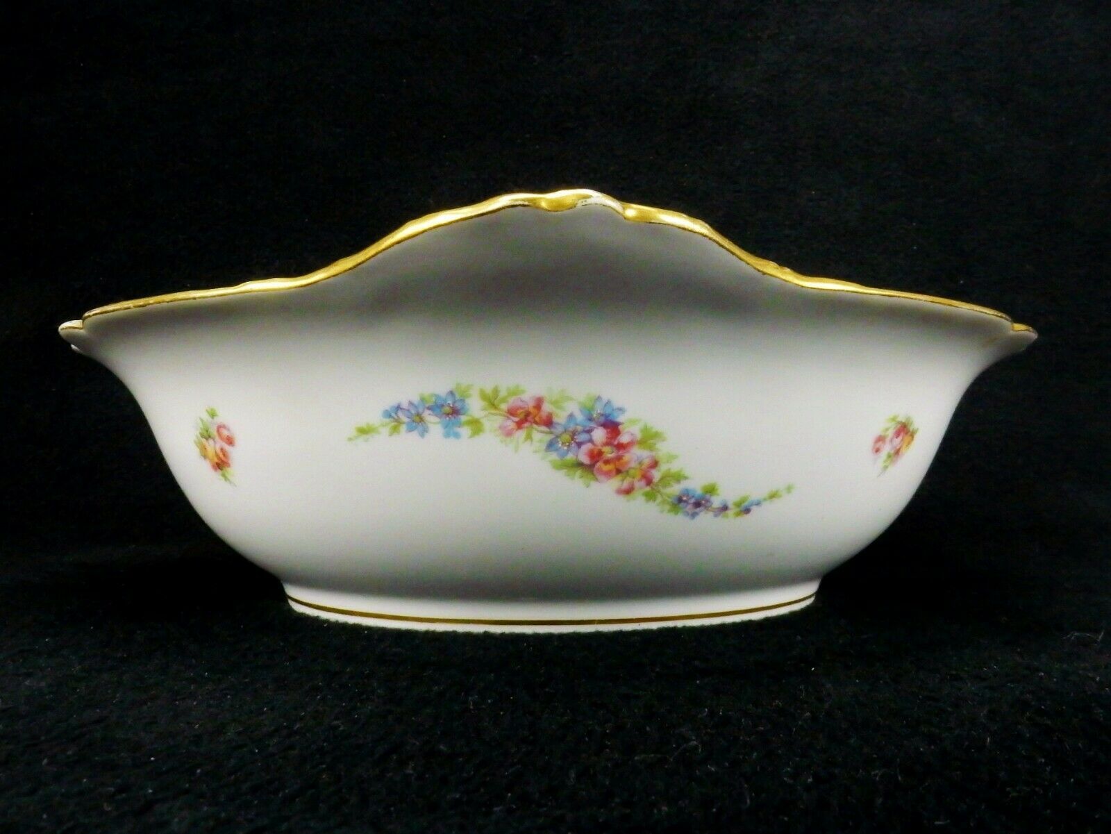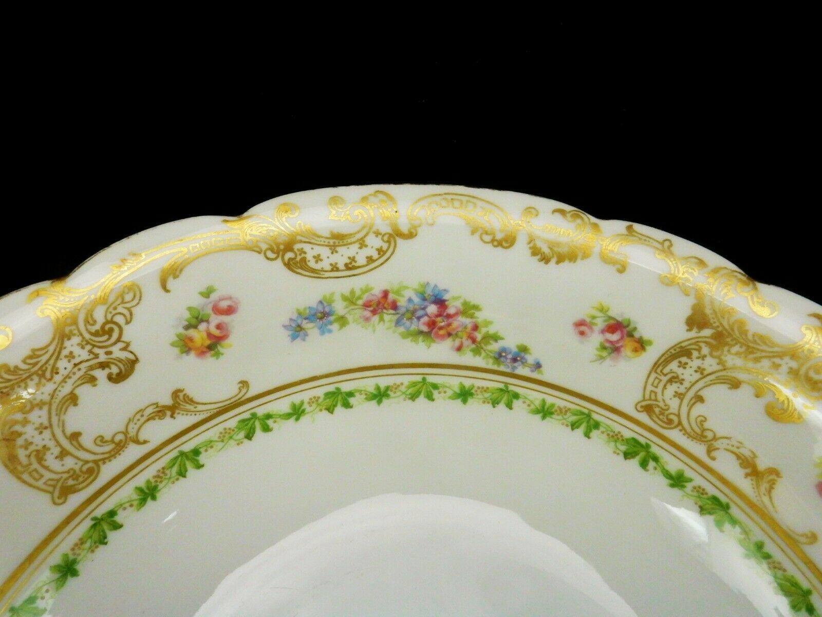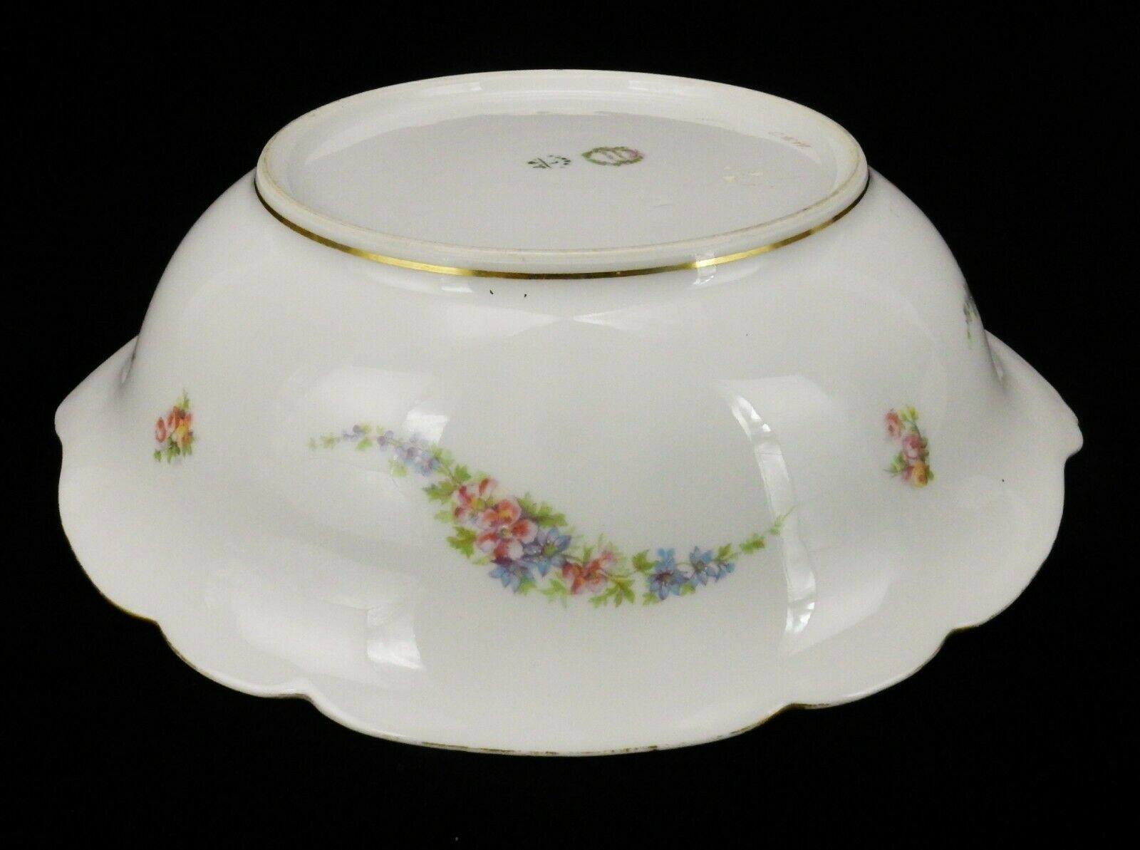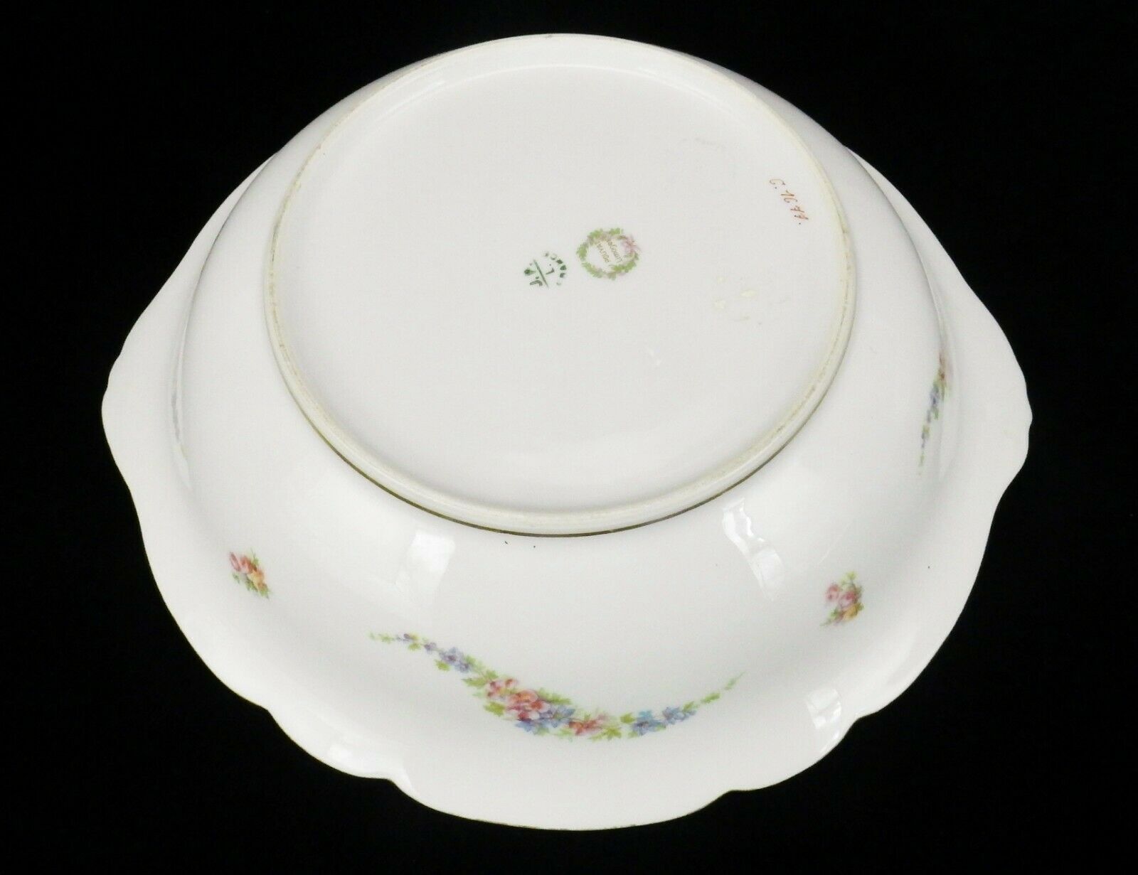 Antique Porcelain Serving Bowl, Jean Pouyat, Limoges, France, Floral & Gold Tone