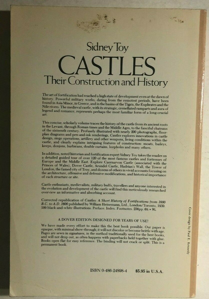CASTLES Their Construction & History by Sidney Toy (Dover) illustrated SC